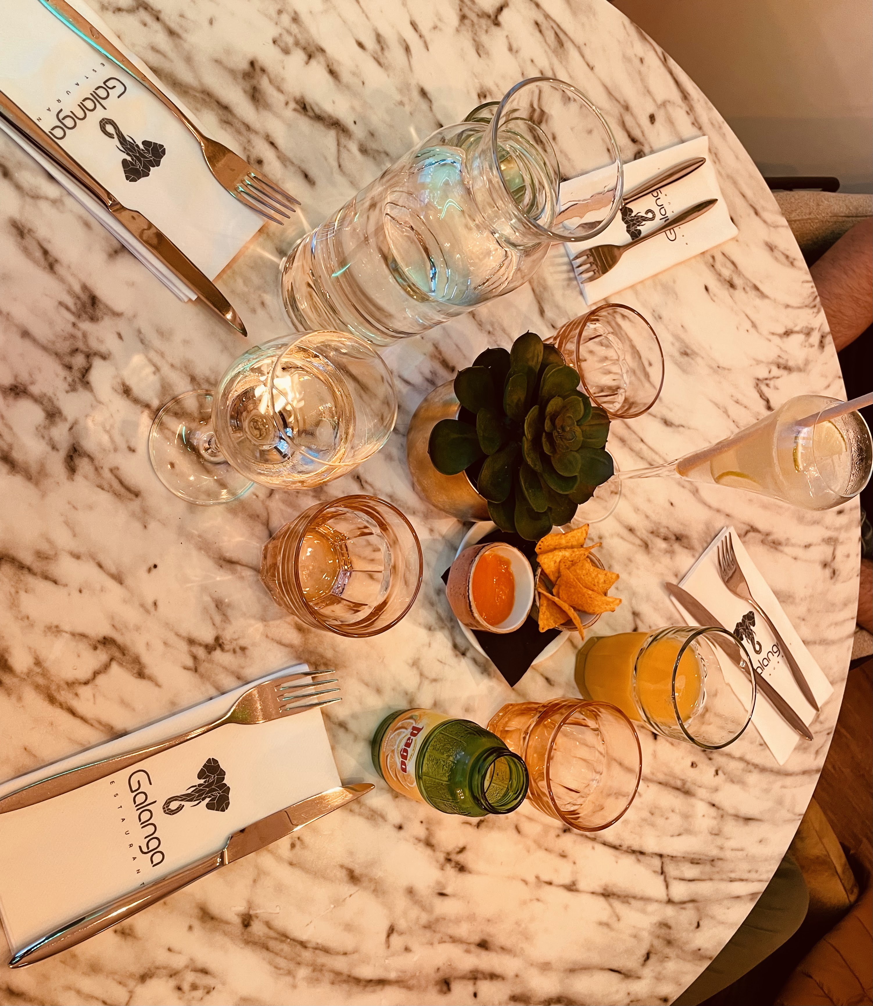 Nous sommes arrivés tardivement ce midi là pour déjeuner sur réservation au Galanga. On nous accueille toutefois très gentiment et on nous informe que les entrées ne sont plus dispos au vue de l'heure. Ok pas de souci, nous comprenons. Les plats sont excellents. Par contre, en ce qui concerne le dessert, nous commandons 2 crèmes brûlées et au lieu de nous informé qu'il n'y en avait plus, en cuisine, ils s'essayent à une version liquide de la crème brûlée... QUEL DOMMAGE ! Pressé par le temps, nous ne pouvons pas prendre autre chose ! Un geste commercial aurait pu être le bienvenu... Mais ce n'est pas le cas. Malgré tous les avis très positifs entendus jusque là, nous sommes déçus de notre passage au Galanga.