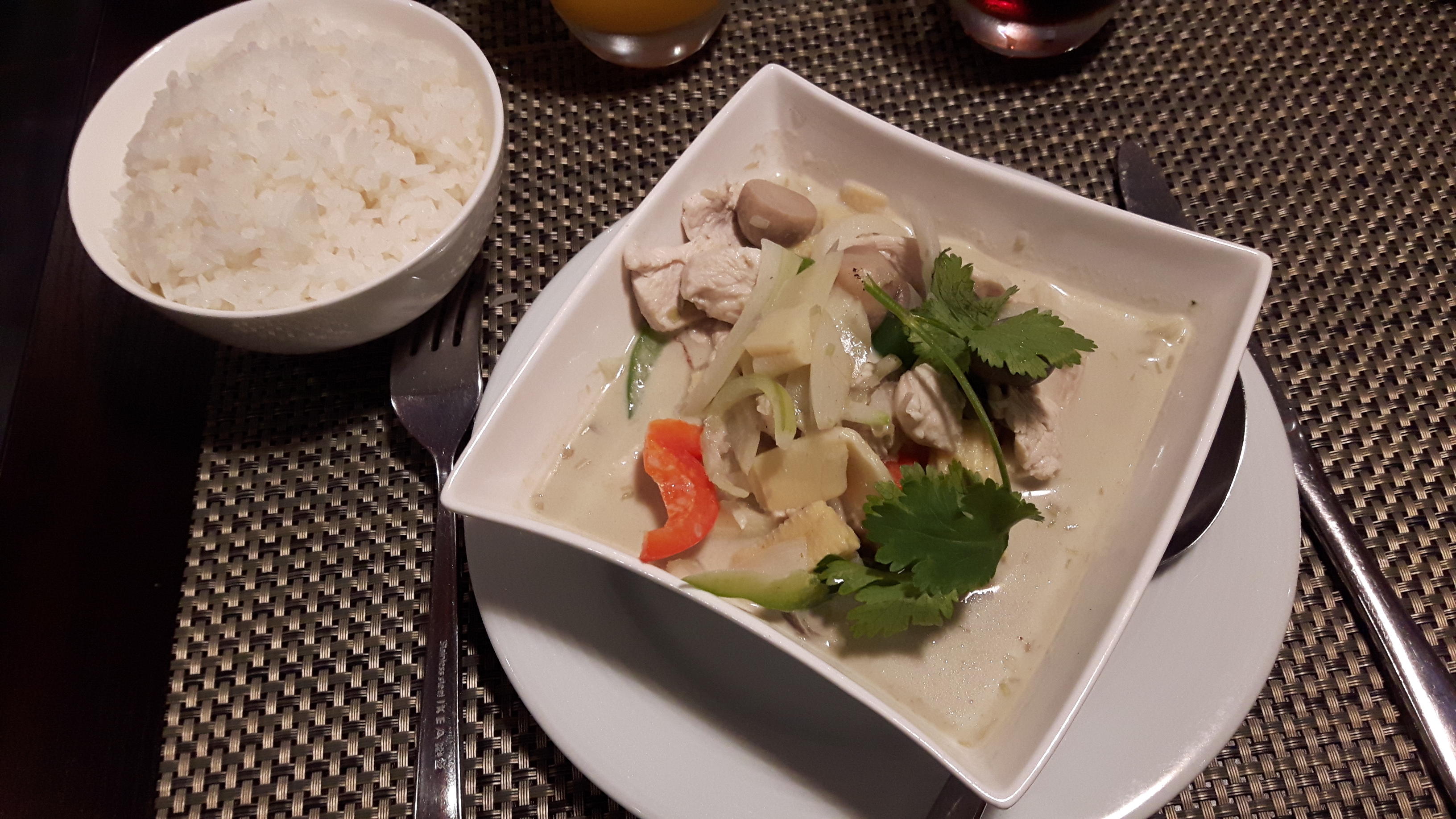 Du choix, des plats copieux, un curry vert Xtra, un riz nature un peu sec (sauce à réclamer), une terrasse agréable et un couple souriant à la barre ! Un bilan très positif !