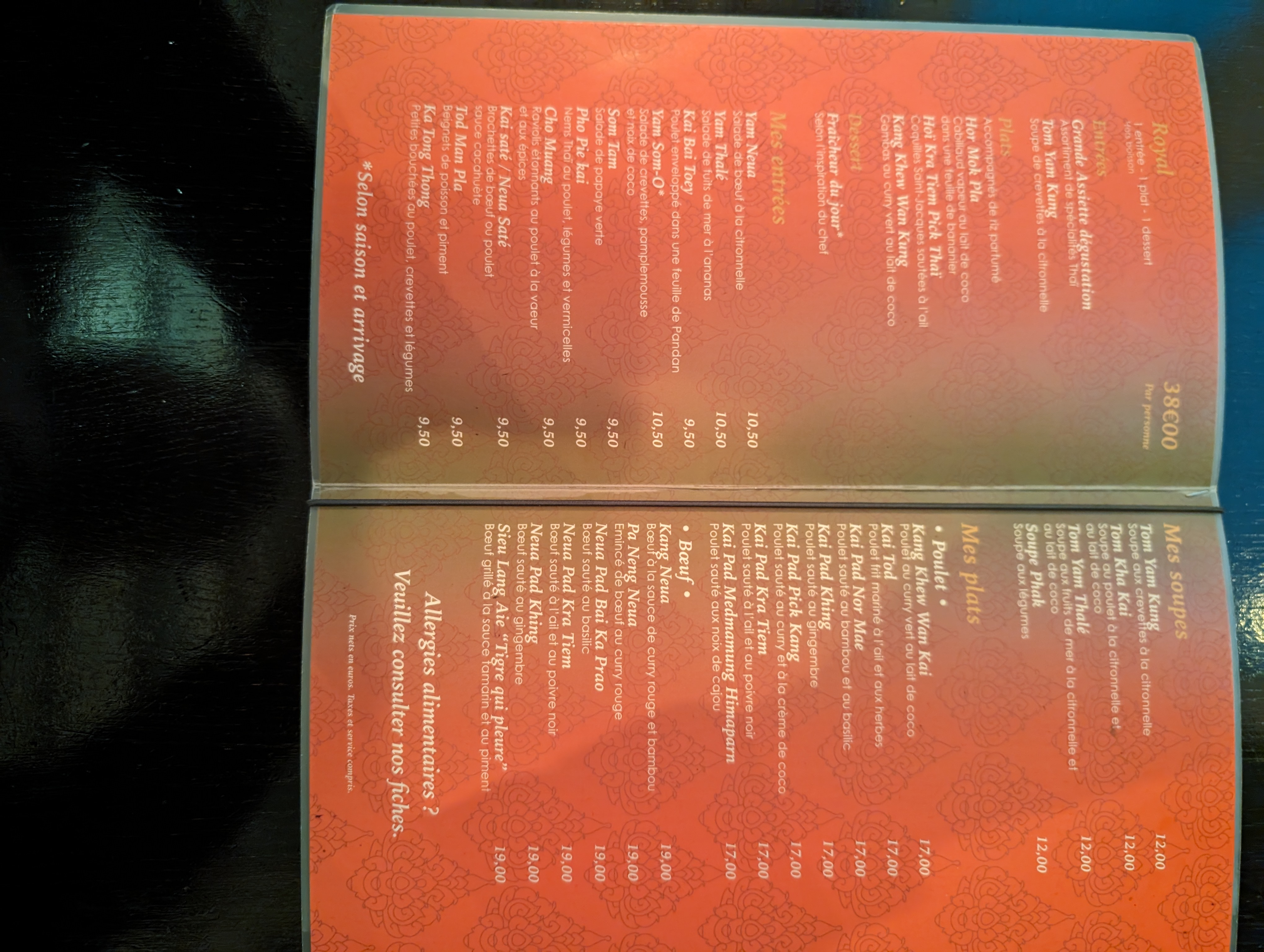 Posté le 25/05/2024 à 13:10"C'est délicieux On est en Thaïlande avec de vrais thais en cuisine et en salle. Ils sont adorables et la carte est à la hauteur C'est un peu cher à la carte mais tellement bon et authentique !"