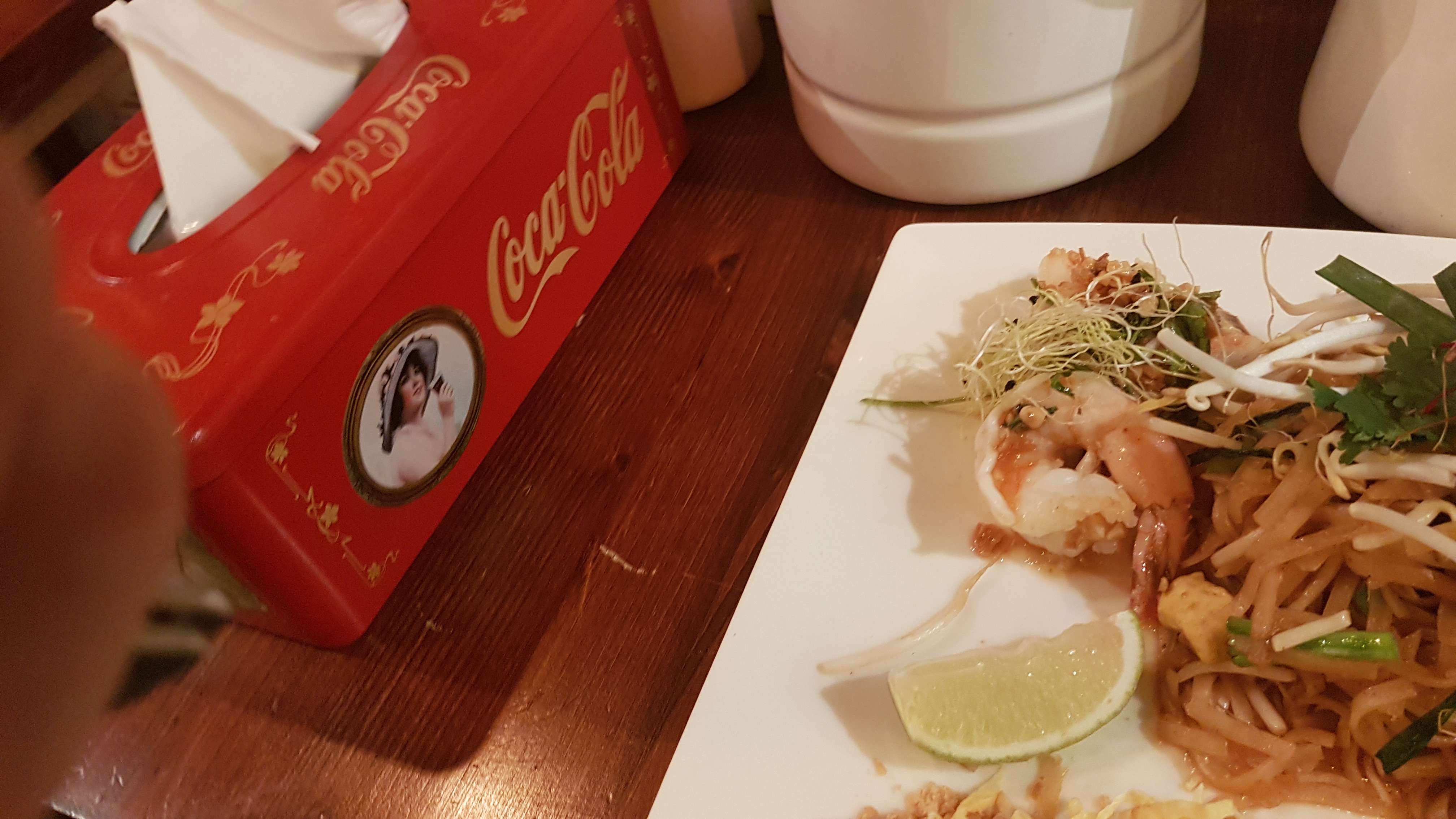 Repas pris sur le pouce, on a été servis rapidement. Il y avait peu de monde pour un repas à midi en semaine, c'était agréable pour manger en tête à tête. Les portions sont convenables. J'ai pris le pad thai au poulet. Le poulet était succulent, le plat en général aussi.