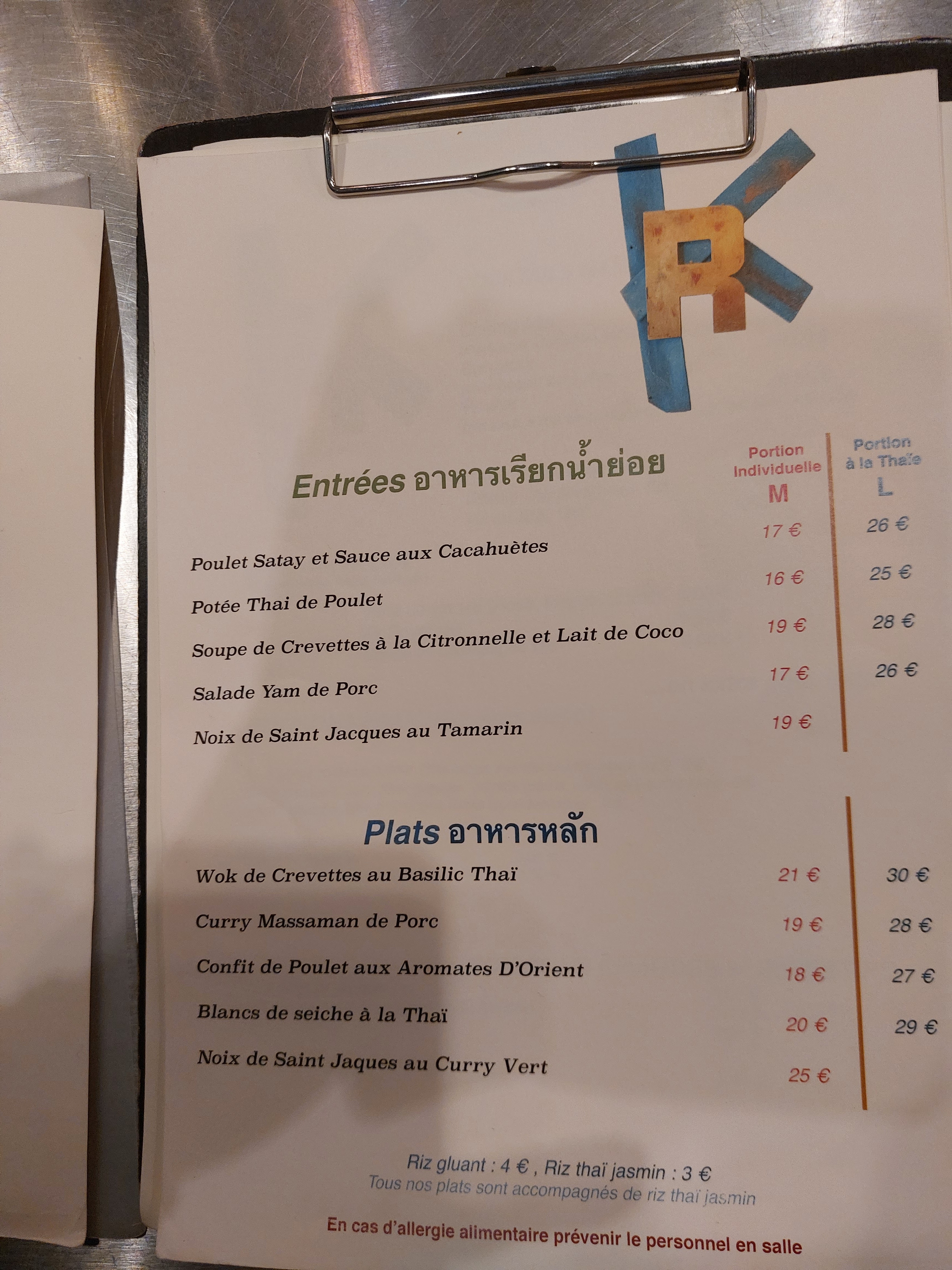 Je vais dans ce restaurant régulièrement et ce que j'aimais c'était l'idée de pouvoir choisir les tailles des portions (S ou L) et ainsi pouvoir les partager avec les personnes autour de la table ce qui rendait le moment plus conviviale, dans l’esprit typiquement thaï et avec des prix très intéressants. Malheureusement ce n'est plus possible... et du coup c'est beaucoup moins intéressant niveau prix. Les entrées vont de 14 à 16€ et les plats entre 18 et 20€ ce qui revient vite cher si on souhaite faire entrée + plat.