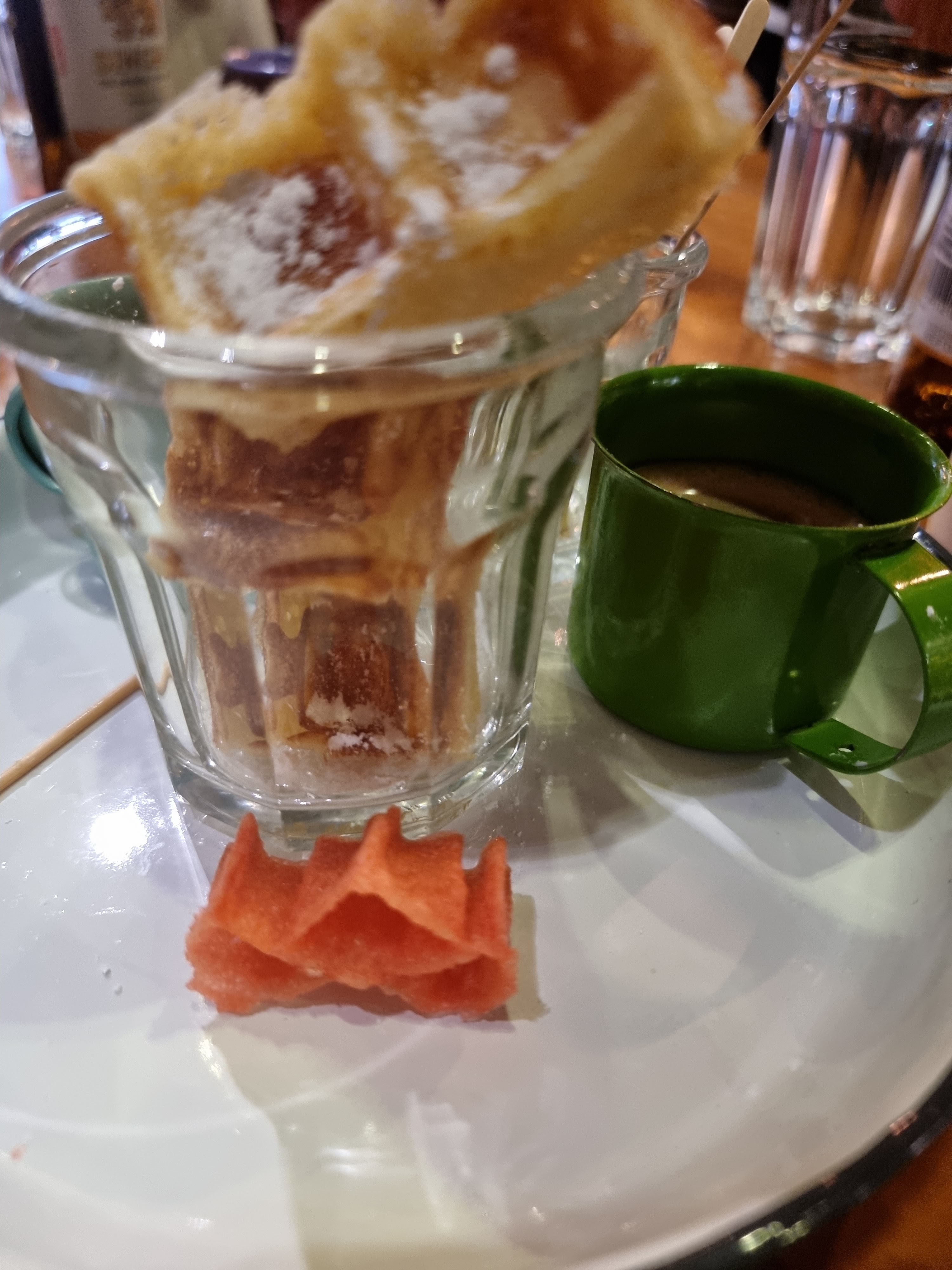Toujours très bon. Vérifiez bien votre note. La serveuse qui nous amenait à boire à mis 4 boissons au lieu de 2 et 3 infusions au lieu de 2. Très curieuses erreurs vu qu'on était 2.