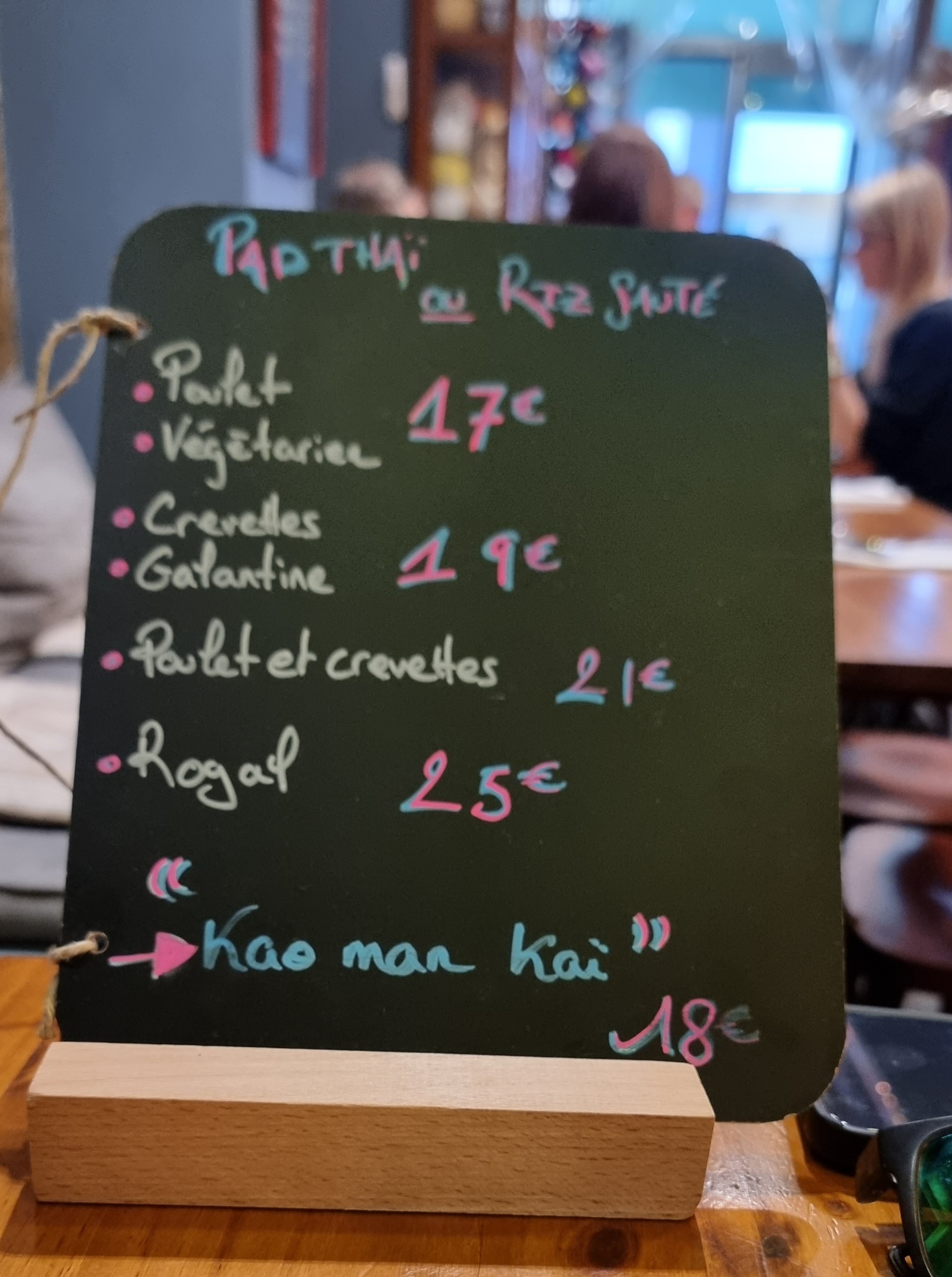 11€ le pad thai aux poulets rien a dire. Deco sympa et original. Un très bon repas et vraiment bien servis.le piment est mis a côté ou pas, super pour les enfants ! Un bon moment avec ma fille.