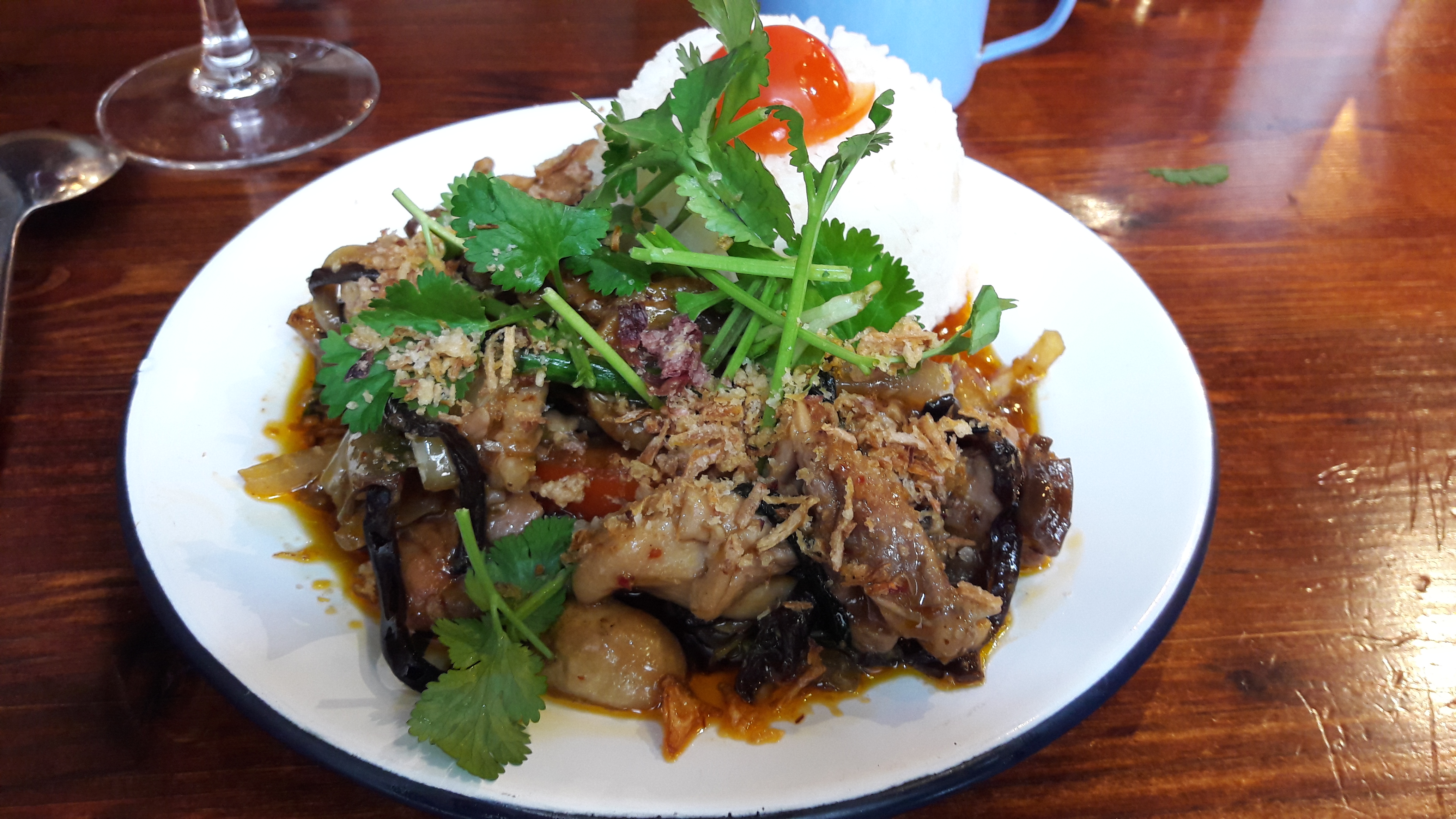 J’ai testé le corner Rivière Kwaï au Food Society (Paris), je suis tombé malade. J’ai donc pris riz frit poulet ; le riz avait tout simplement tourné, c’était si mal chauffé que le riz était encore en morceau. Sincèrement un scandale. Une honte à la cuisine thaï.