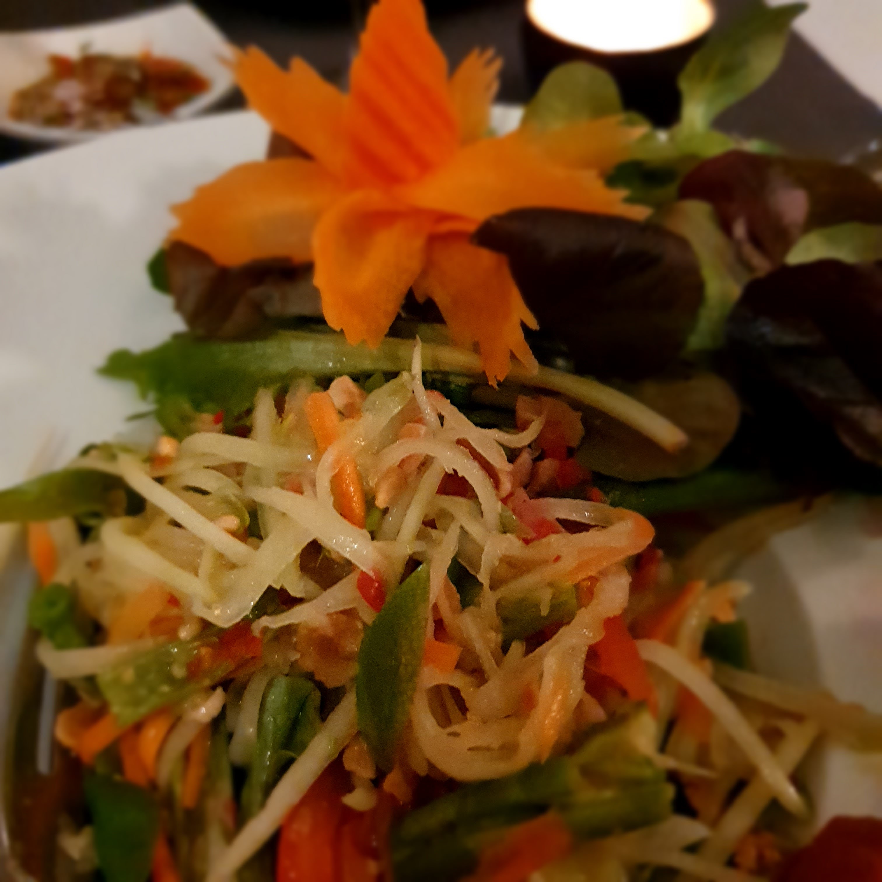Posté le 15/07/2023 à 17:28"Un coup de coeur ❤ pour ce restaurant où j'ai été acceuilli fin juin avec beaucoup de soin de la part du personnel. Les plats sont bien présentés et gouteux 😋 La décoration intimiste avec les petites lumières font leur effet 💫 Cette belle expérience m'a insisté à revenir avec un groupe de 5 copines qui ont toutes appréciées. Encore merci je reviendrai lors de mon prochain déplacement sur Reims. Je vous recommande ce restaurant si vous aimez la cuisine thaï."