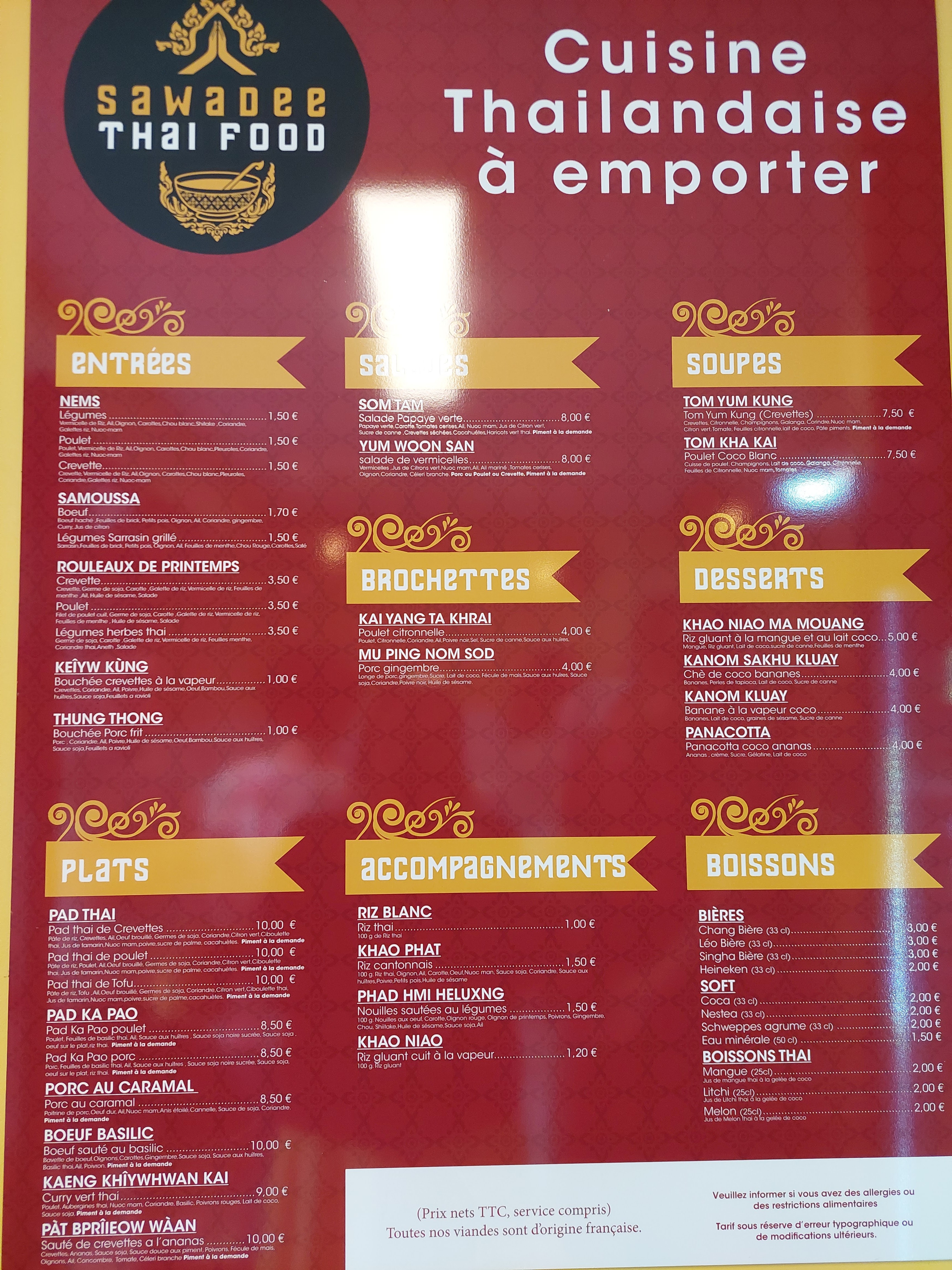 De retour d’un séjour en Thaïlande, nous sommes heureux de pouvoir retrouver les mêmes saveurs à Quimperlé. Les nems au poulet ainsi que les samoussas aux légumes Sarrazin grillé sont excellents, je dirais même que je n’en ai jamais mangé d’aussi bons. Le poulet au curry vert est aussi délicieux qu’en Thaïlande. Le plat est très copieux….seul point négatif, il y a trop peu de morceaux de poulets par rapport à la sauce et aux légumes . Le mango sticky rice est très bon également. Nous reviendrons très vite et nous conseillons à tous ceux qui souhaitent réveiller leurs papilles en souvenir de leur voyage en Thaïlande de se rendre à Sawadee Thaï food, vous ne serez pas déçus.