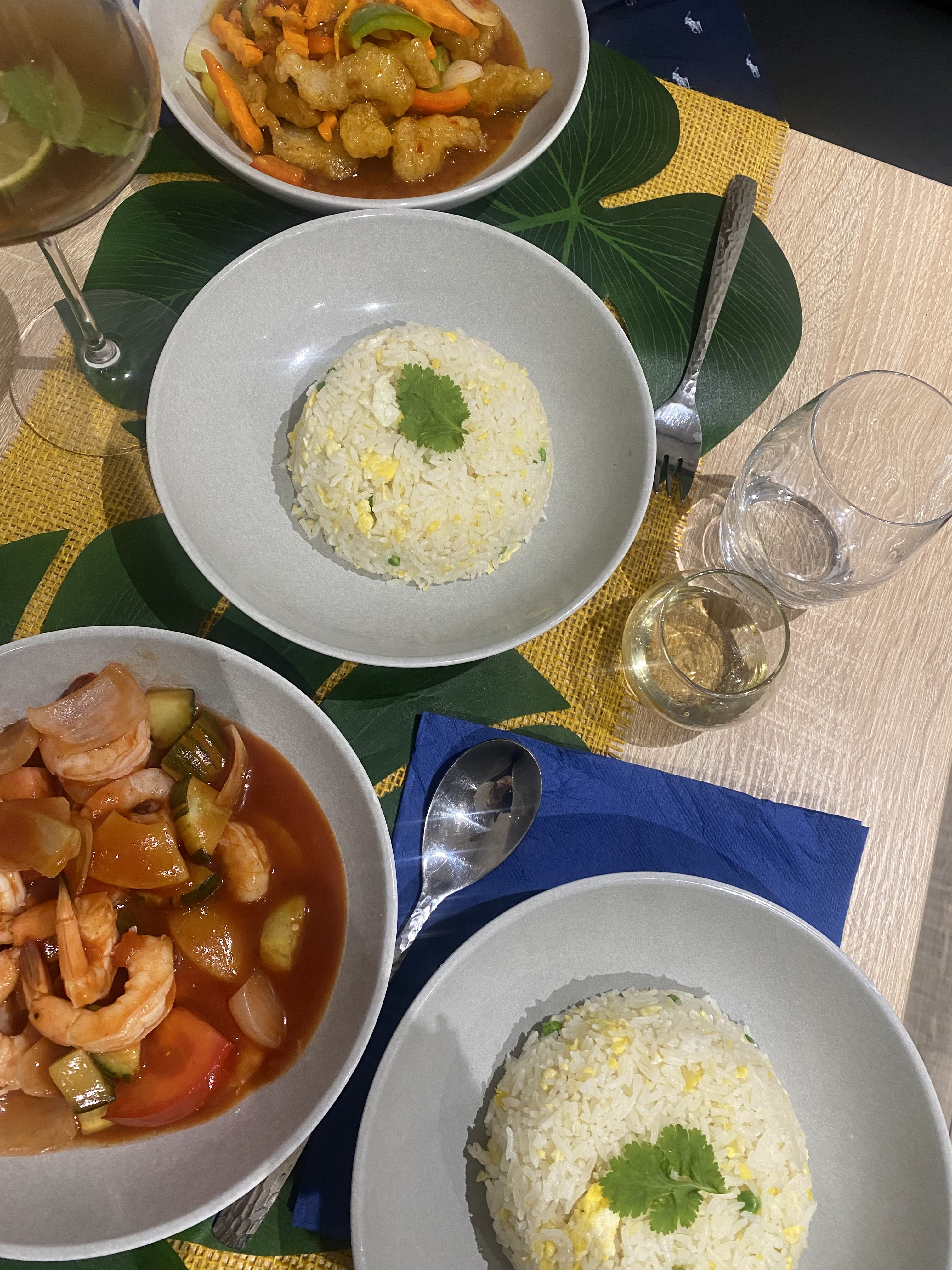 1 ere commande à emporter pour moi. Tout est fait maison ! Les crevettes au curry vert étaient délicieux 😋 à refaire très rapidement