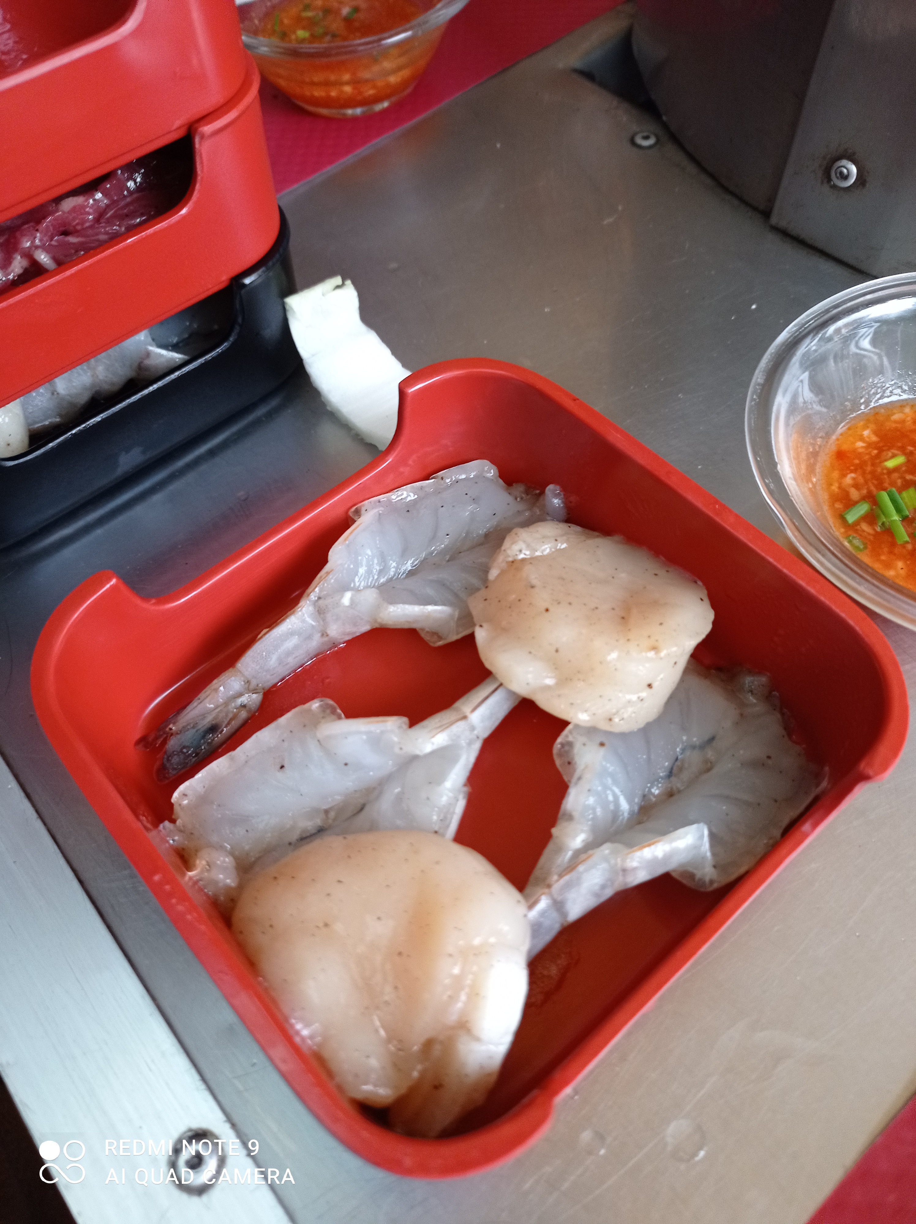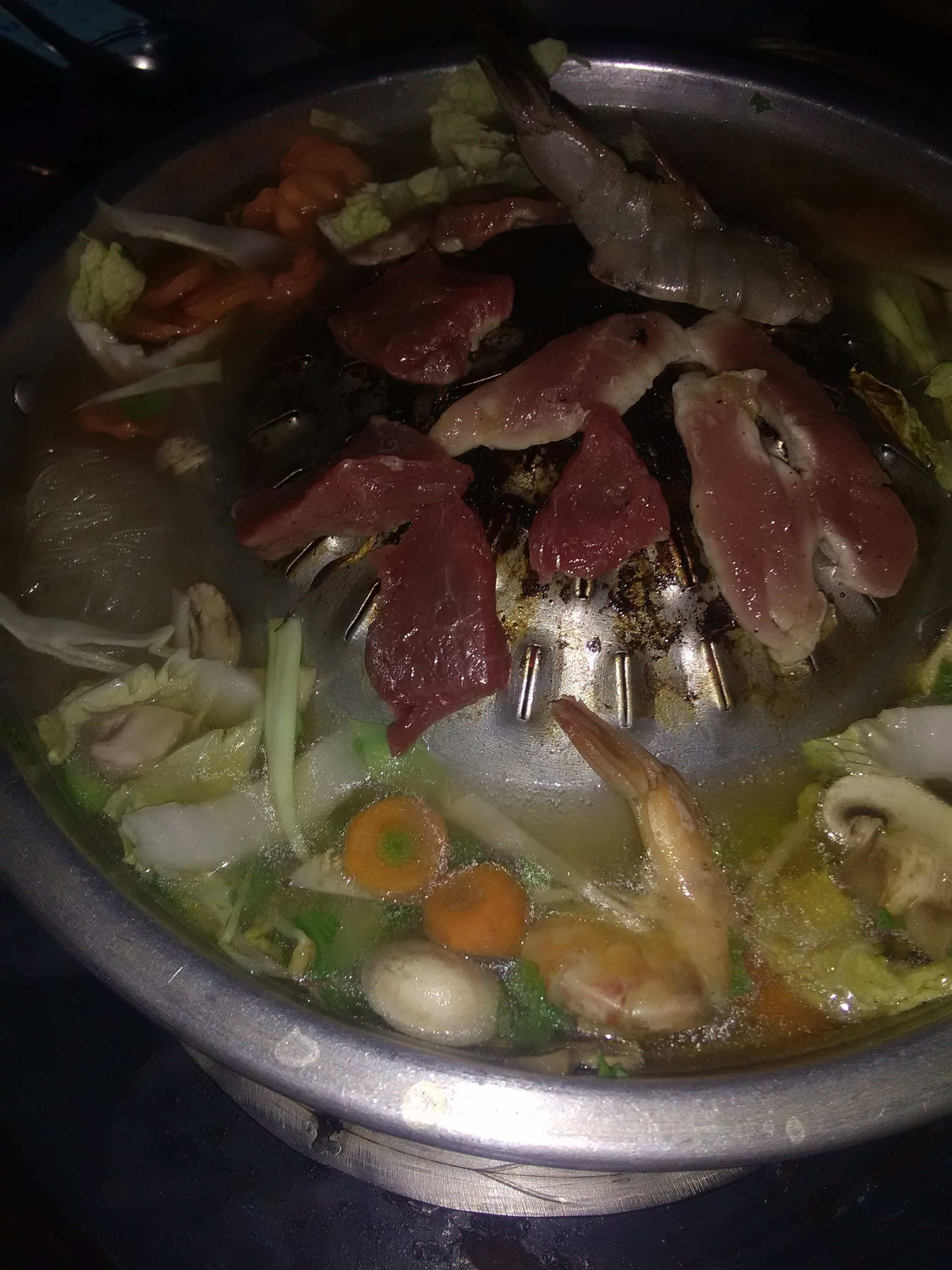 Nous avons eu du mu kratha, une expérience culinaire savoureuse et amusante où vous faites griller vos protéines (fruits de mer et viandes) au centre, à la manière d'un barbecue coréen, et ragoût de légumes et de nouilles en verre dans un bouillon à l'extérieur, à la manière d'une fondue chinoise. J'ai été impressionné par la qualité de la viande et des fruits de mer. Ils ne le servent qu'en haute saison, hors saison, ils préparent différents plats thaïlandais. Nous reviendrons plus tard pour les vérifier. On a passé un très bon moment, merci !