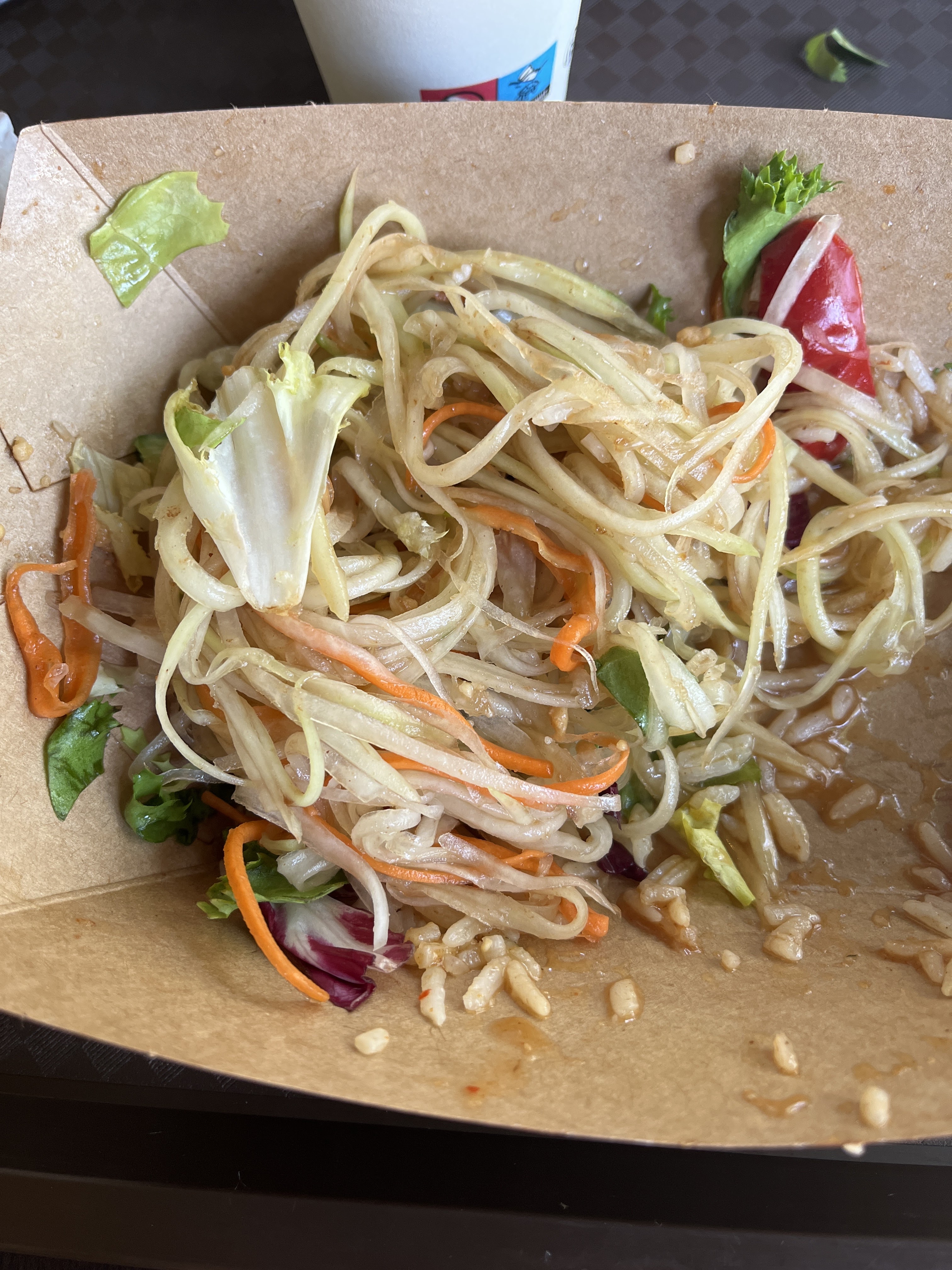 Posté le 31/05/2021 à 15:17"J’y suis allé lundi 31/5 à la sortie du travail, j’avais déjà été 3 fois dans ce resto, donc ce soir là j’y retourne , J’ai commandé des plats à la carte , j’ai demandé si pour le plat de tofu il y avait un accompagnement de riz ou pâtes avec, la vendeuse m’a répondu c’est comme je veux. J’ai demandé des pâtes avec le plat de tofu. Ensuite J’ai commandé 6 plats en tout (sans menu) en regardant le tableau affiché derrière la vendeuse, dont une salade de papaye et une salade de bœuf hors menu, j’ai payé 68€ pour deux entrées et 4 plats et lorsque je suis arrivée chez moi j’ai eu la surprise de découvrir qu’elle avait mit du riz partout, même dans les entrées: la moitié de la barquette de la salade de bœuf et de la salade de papaye, étaient remplies de riz ! Alors que normalement pour les entrées , il n’y pas de riz! Du riz chaud dans une salade froide ?? Et le riz ne coûte rien! J’ai demandé uniquement pour le tofu et elle m’a mit du riz partout ! Et j’ai payé le prix normal affiché à la carte de chaque plat, alors qu’en réalité elle ne m’a mit que la moitié de quantité en plat! Je ne recommande pas du tout !!!"