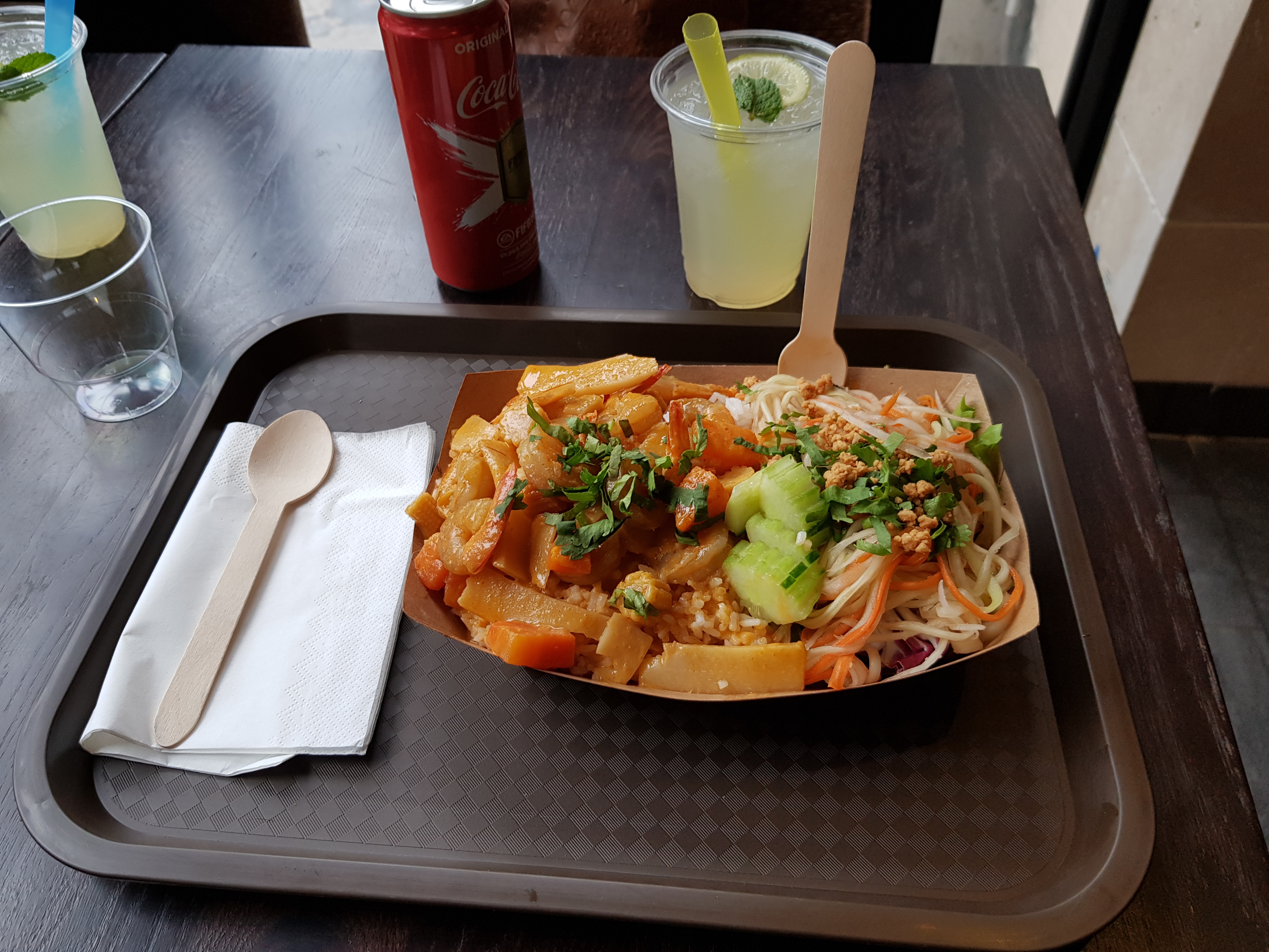 Posté le 02/03/2021 à 11:25"On s'éloigne de la vraie cuisine Thaï. Le riz Thaï n'est finalement que riz blanc nature avec une pince de poudre de cacahouète sur le dessus, le poulet au curry malgré une sauce réussie est fait avec des légumes en boîtes et pour finir une limonade maison faite avec du jus de citron industriel. À éviter"