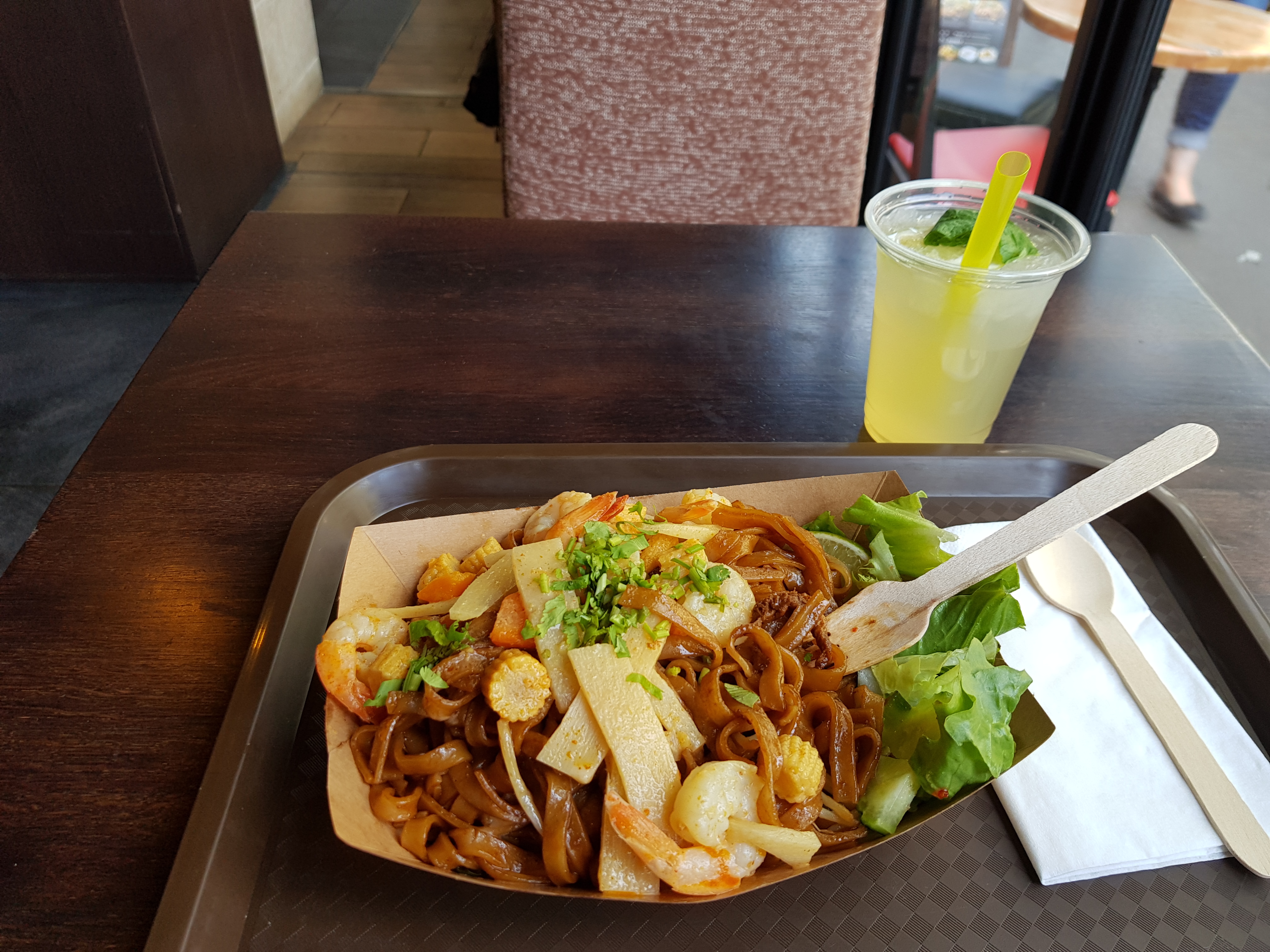Posté le 11/08/2018 à 00:16"Lieu quelconque, service attentif et Pad Thaï excellent et copieux"