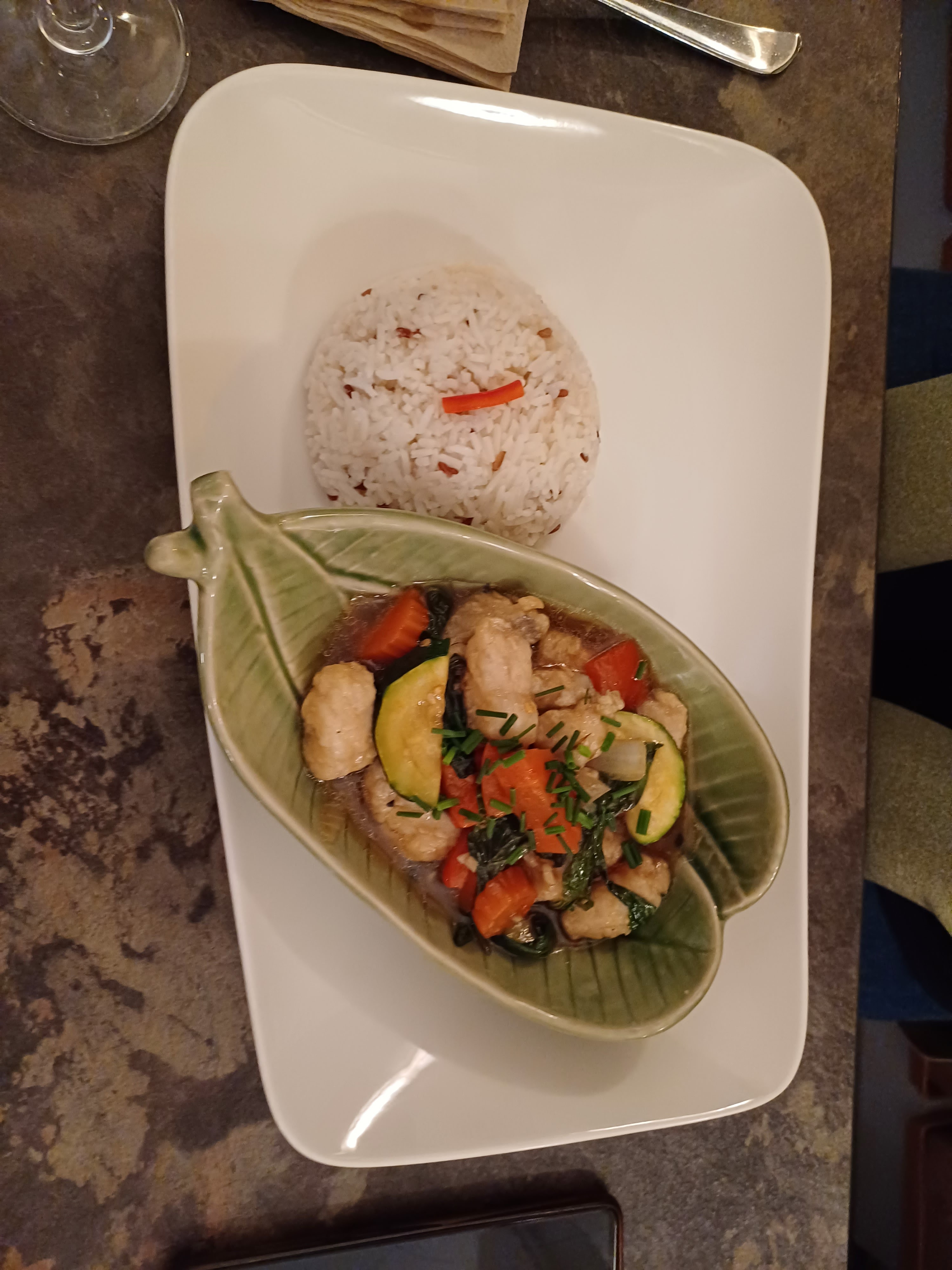 Excellente expérience de la cuisine Thaï, belle découverte de ce restaurant où on vous laisse le temps de finir votre apéritif avant de vous apporter l' entrée c'est rare😉. Accueil chaleureux je recommande 👍