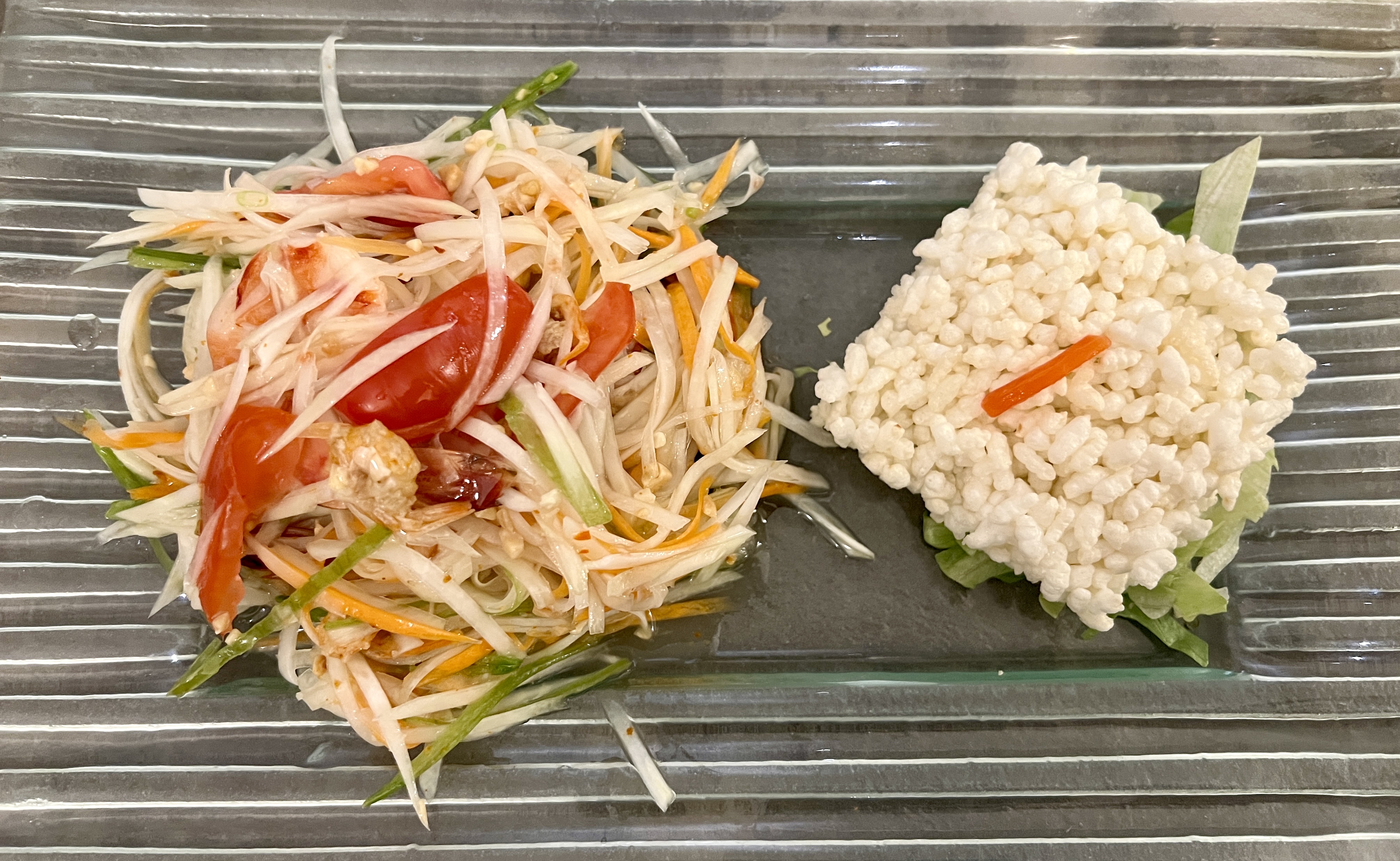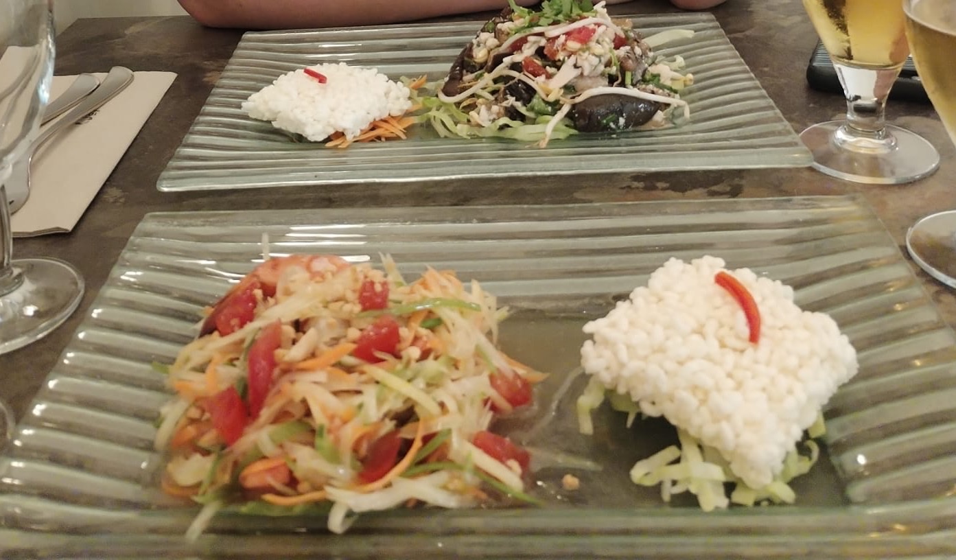 Excellente salade de papayes. Je recommande vivement la table du Sukhothai.
