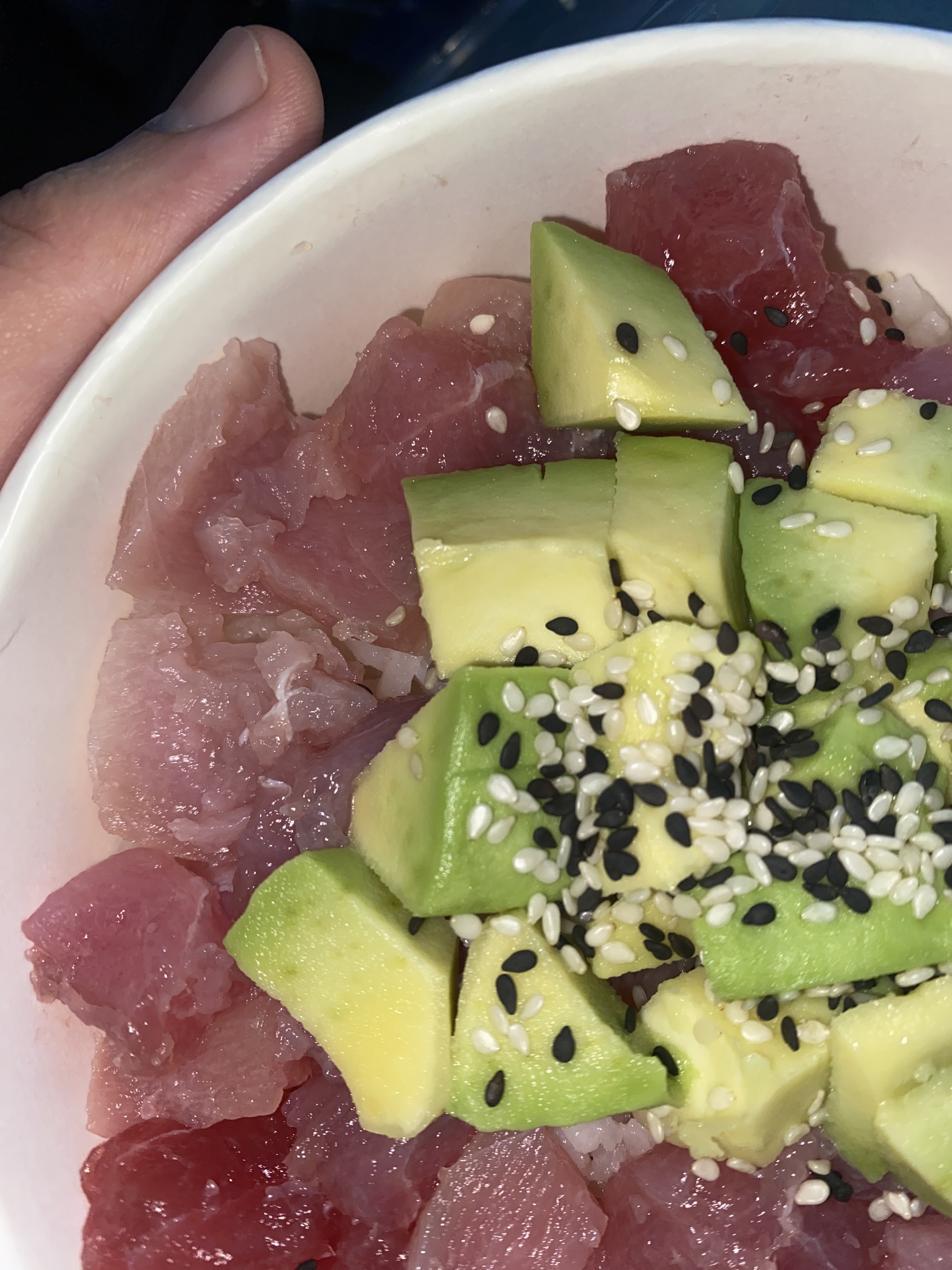Pour moi : Pas de tiramisu + Pas de sauce soja salé + Pas de chou blanc ! À la place une espèce de « vinaigrette » et du chou rouge Salade de fruits sans bananes alors qu’il était stipulé « ananas mangue banane » Pour mon Mari : Pas de cheese dans le poke bowl de mon mari + Pas de sauce soja sucrée ! À la place une espèce de « vinaigrette » 1ere et dernière fois très déçue 😞 Photo de mon poke bowl