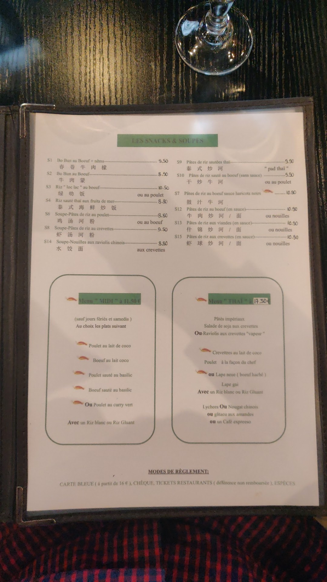 Petit Restaurant thaï simple et efficace. Menu 10,5€ plat et boisson. Très bon.