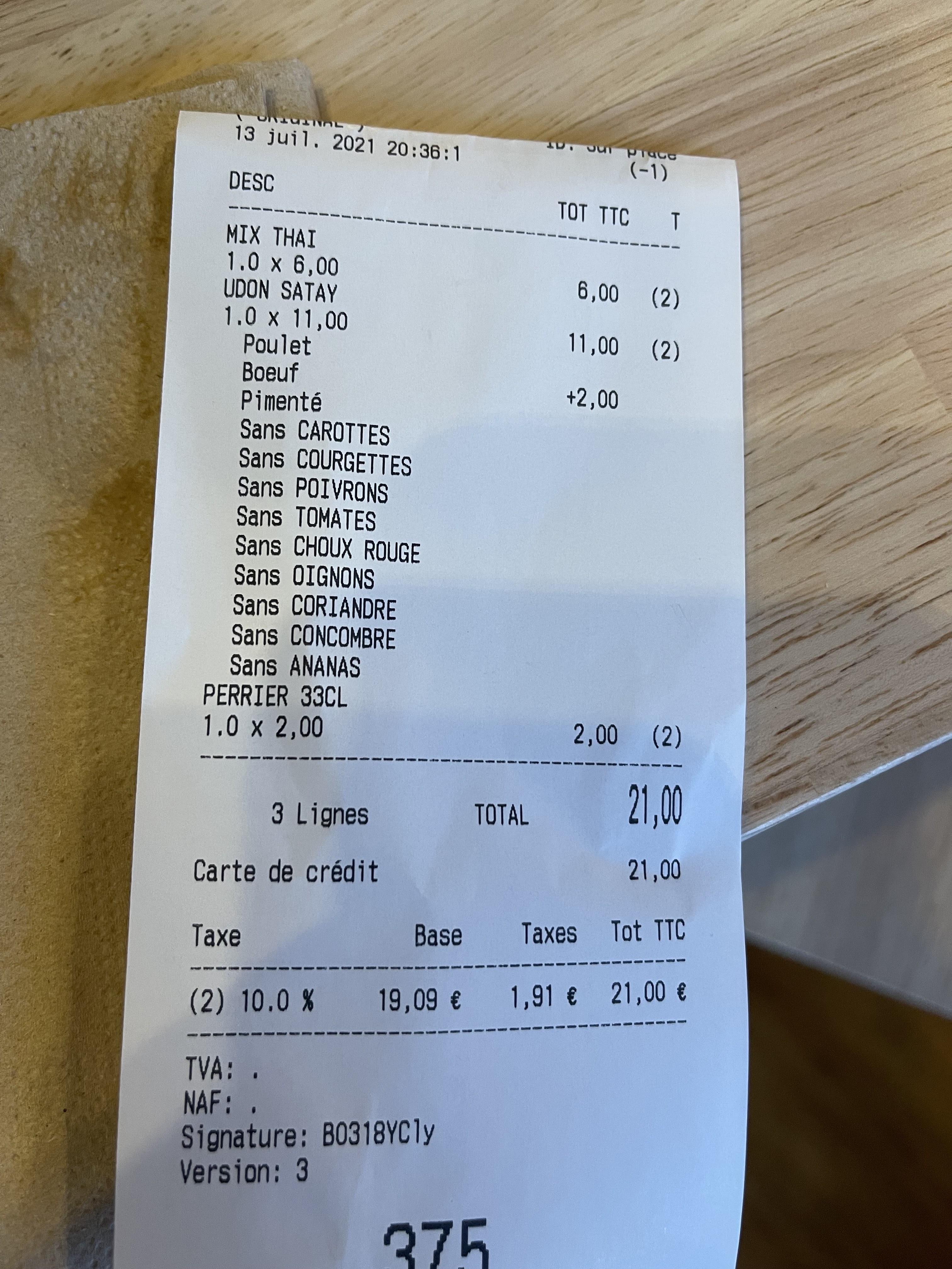 Bonjour Julien, Nous sommes fiers de vous savoir satisfait de votre expérience chez nous. Néanmoins, nous vous remercions d'avoir posté ce retour afin d'améliorer notre service. Au plaisir de vous revoir prochainement dans notre établissement. L'équipe Thaï Break - Clermont Ferrand