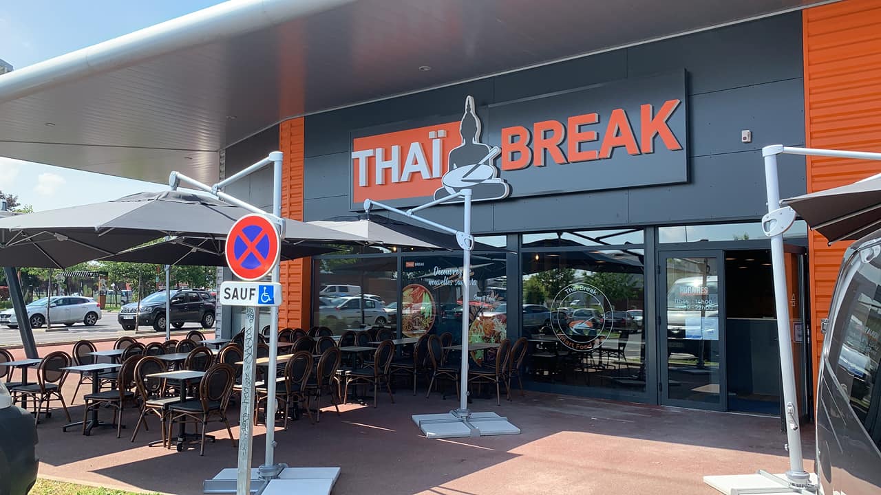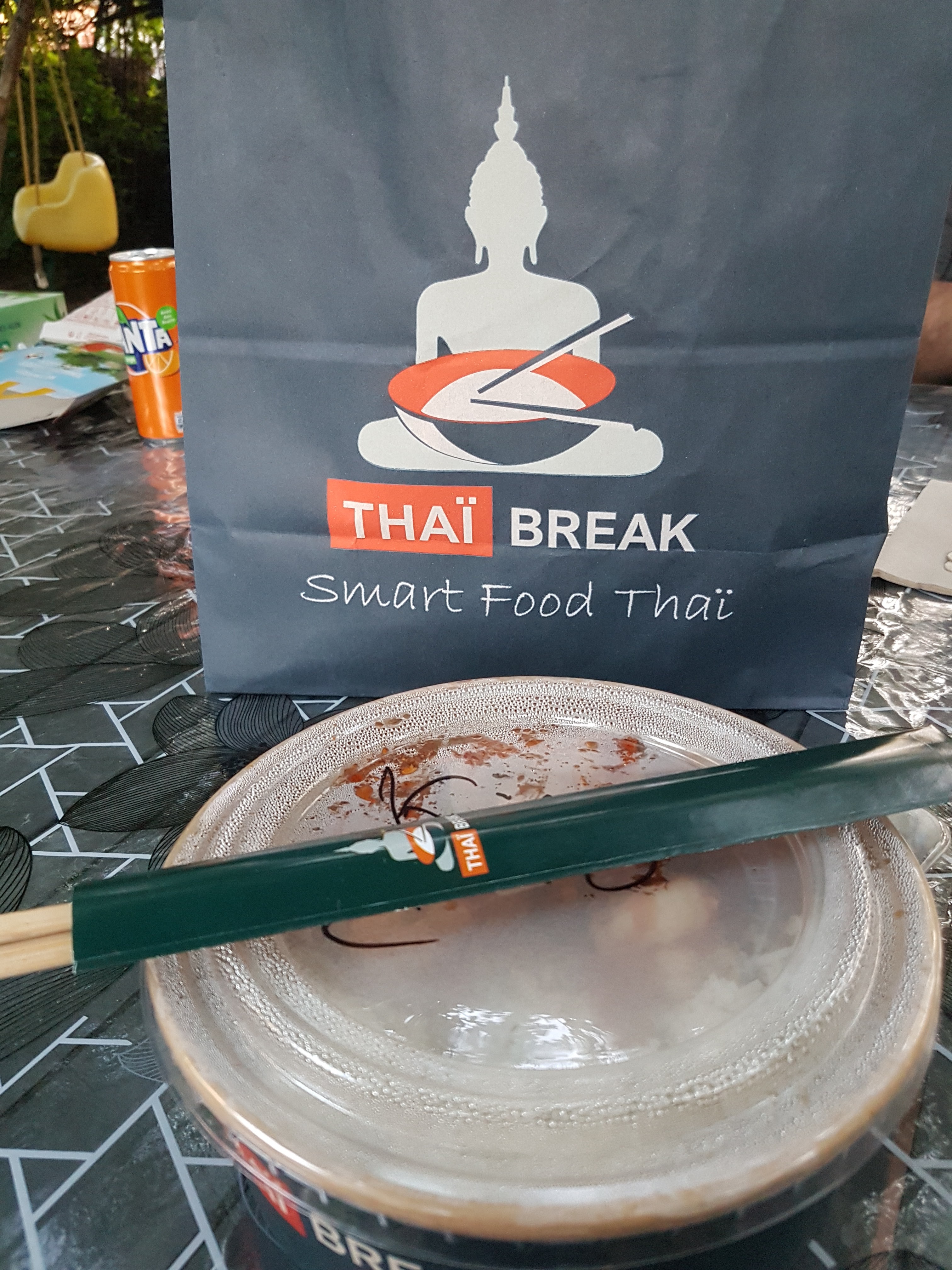 Nous avons commandé 2 fois, à emporter, chez Thaï Break. Les plats sont sympa, nous avons bien apprécié. J'ai pris le meme plat les 2 fois : King Kaho. Très bon ! Cependant, ils ne savent pas doser le piment. La 1ère fois j'ai pris intensité 5, la 2ème : 3. Aucune différence d'intensité entre les 2. C'est dommage. Autrement, sympathique. La version Enfant du King Kaho est très relevée aussi, si les enfants n'ont pas l'habitude, attention.