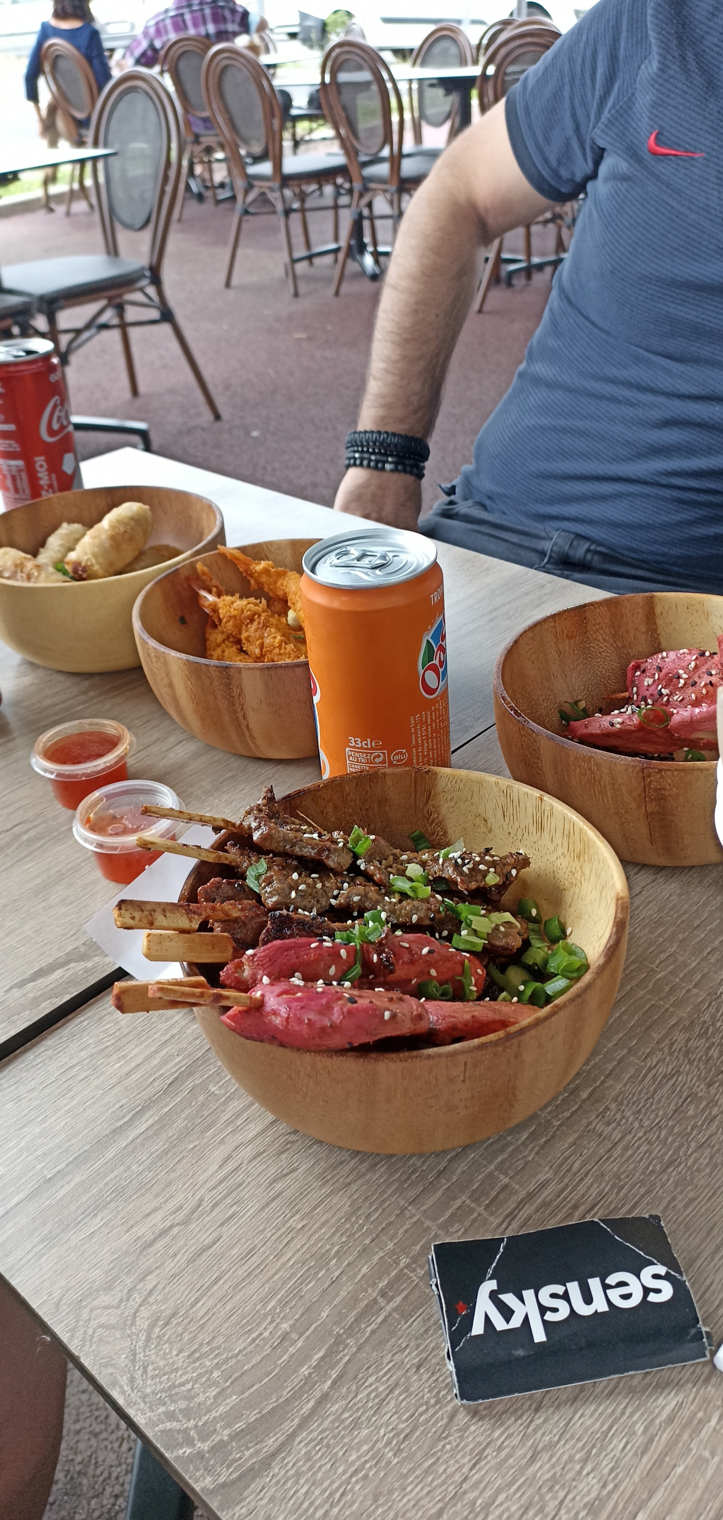 Salut à tous, Je ne peux pas être totalement juste dans mon avis car quand je suis allée y’avait quasiment personne 😂. Le lieu est agréable, la commande s’effectue directement sur un écran. La caissière agréable. Nous avons pris un BO BUN, très bon pas assez pimenté à mon goût 👅 et des brochettes de bœufs saté au nombre de 3…très bon mais j’ai trouvé cher pour 2morceaux de viande sur chaque brochette .