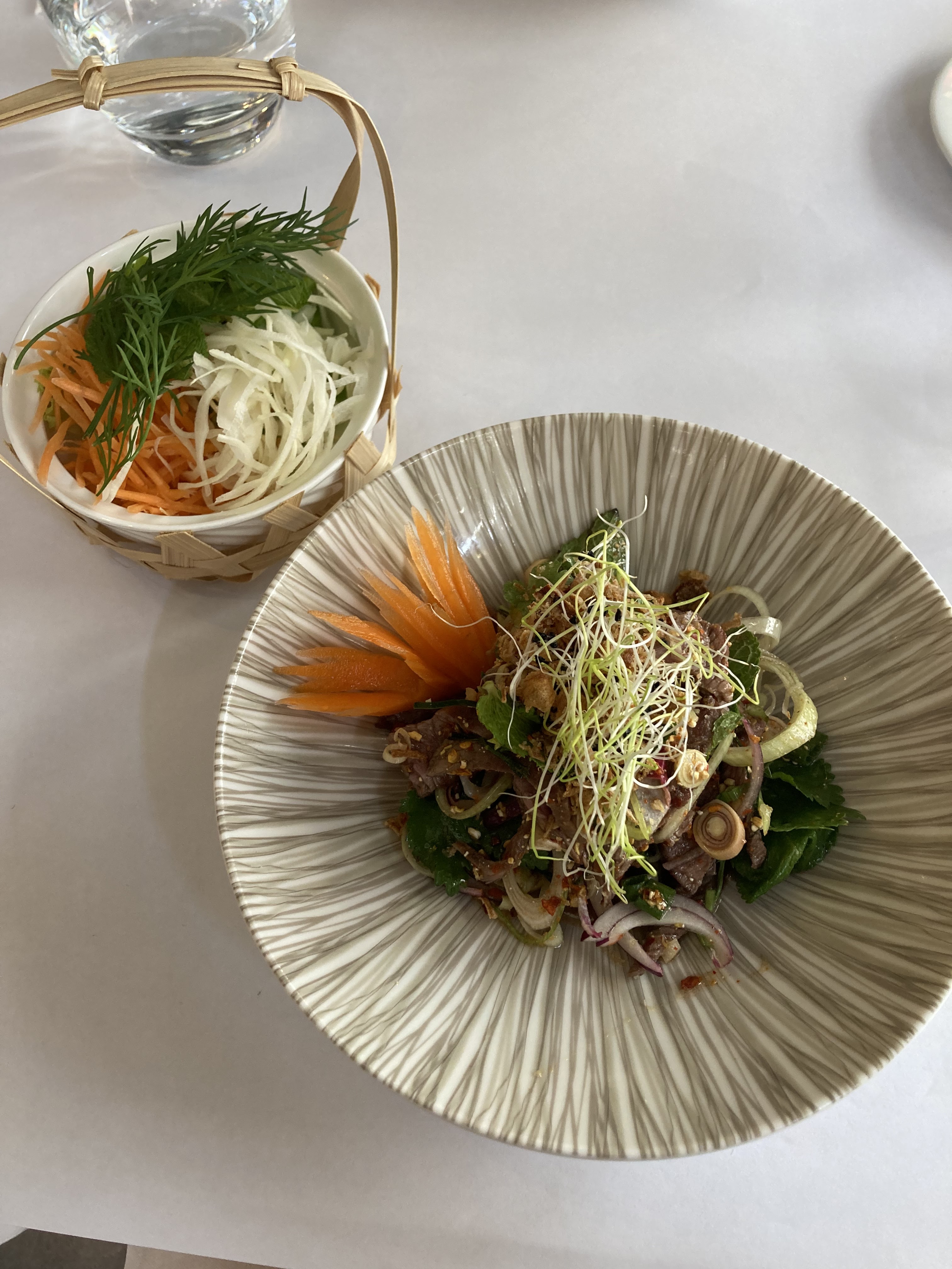 J'ai découvert ce restaurant thaï avec deux amies au dîner : nous avons été très bien accueilli, le cadre est très beau ( en plus les tables sont espacées ce qui est très agréable pour l'intimité des conversations), et les plats sont très bons (quantités généreuses !). Que demander de plus ? A découvrir absolument !