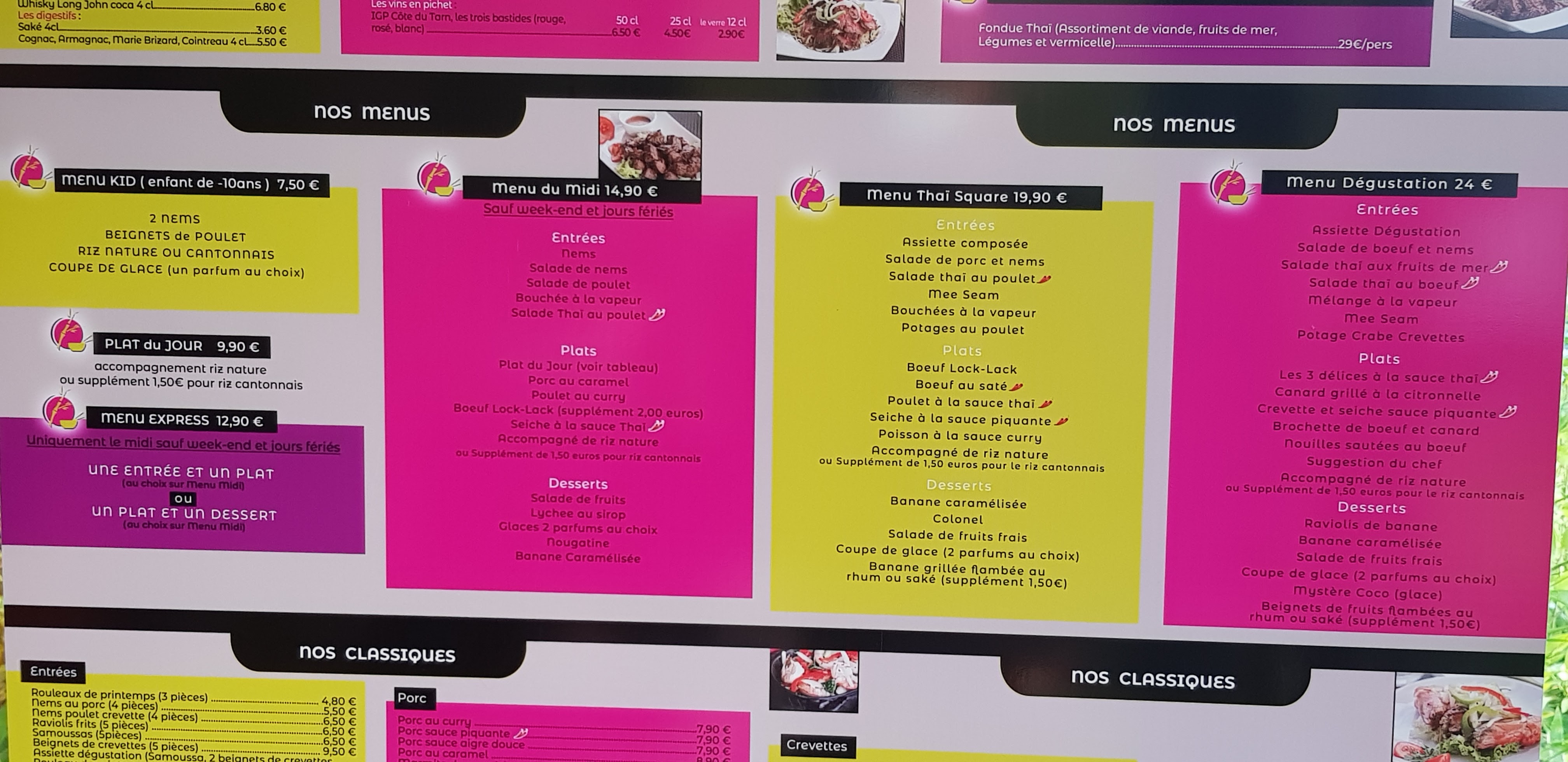Prête à faire 45 minutes de route pour le Thai Square Découvert en 2014 nous avons depuis déménagé sans jamais trouver un restaurant arrivant à la cheville du Thai Square. Aujourd'hui lorsque nous voulons nous faire plaisir nous prenons notre petite voiture pour déguster LE boeuf loc lac. Un régal, que dis-je ! Un délice ! Mention spéciale pour la salade de nems très bonne et pratique à emporter. Je n'ai plus qu'un mot Bon appétit.