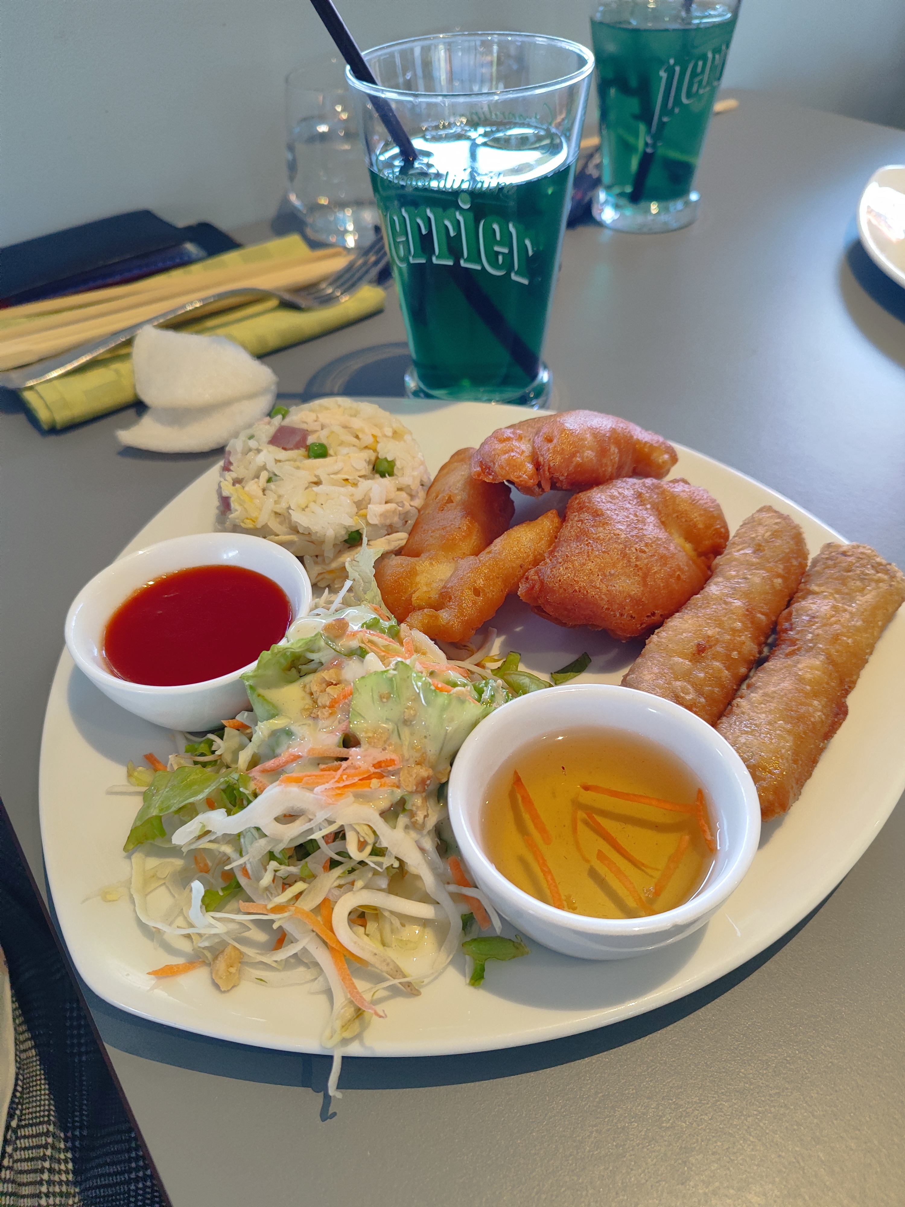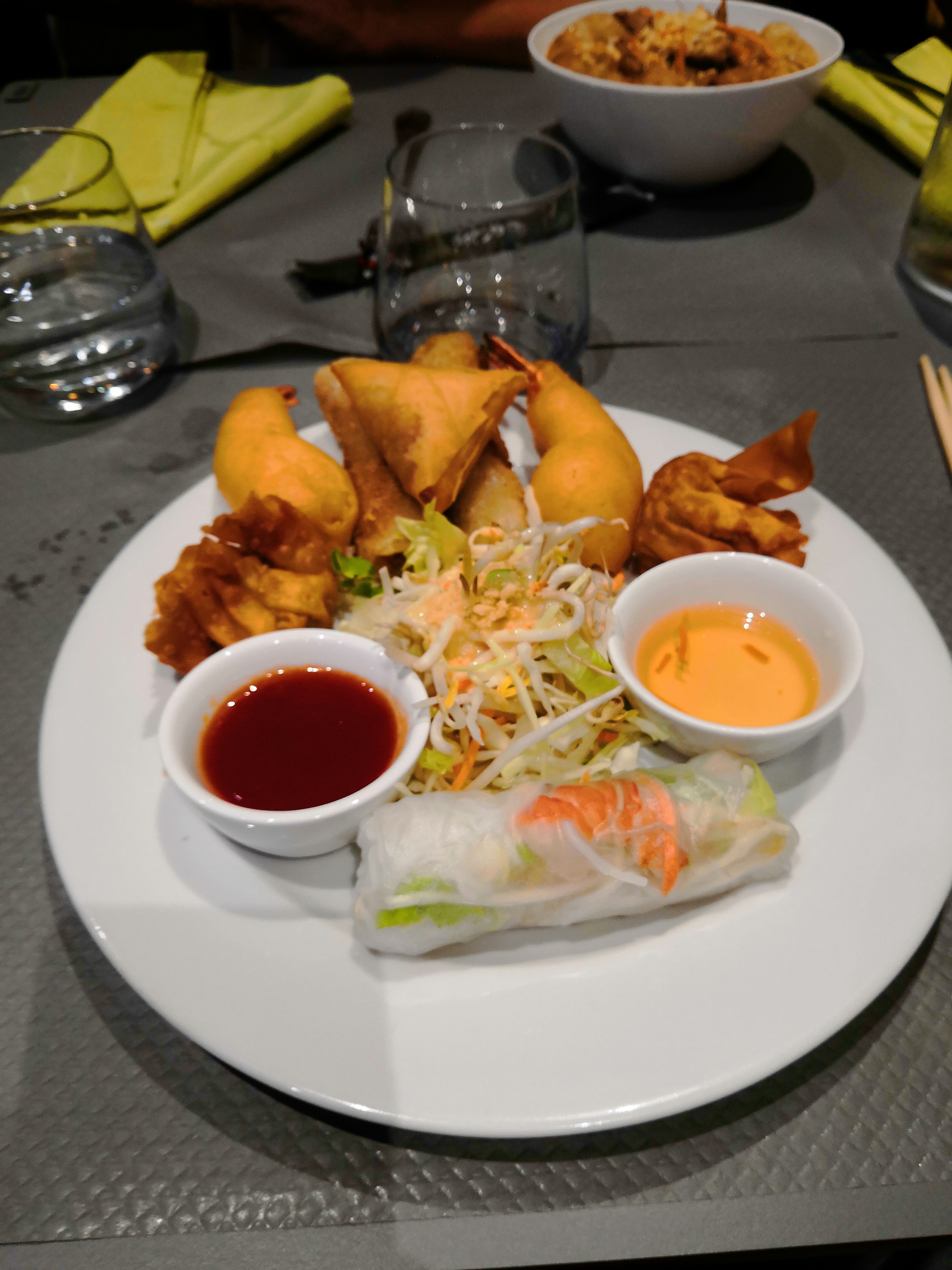 Franchement rien à dire , malheureusement on était pressé donc on a du vite vite manger mais c'était très bon. Par contre les nems sont d'office au porc donc si vous ne voulez pas , juste précisez le 😉 Je recommande !