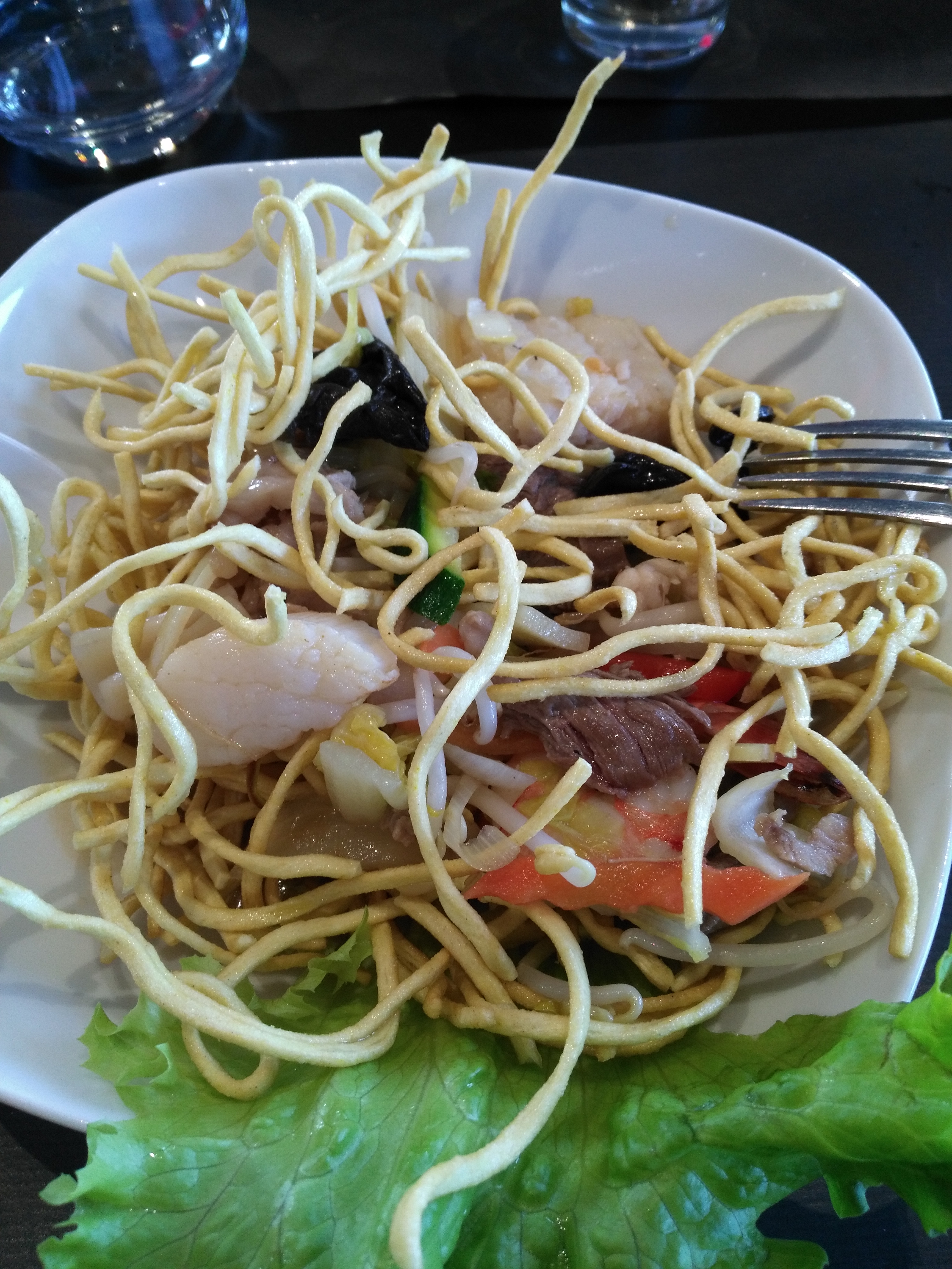Le resto était plein. De l'attente au départ mais ensuite servi rapidement entre les plats. J'aurais aimé un peu plus de variété de fruits de mer. A part les crevettes, je n'en ai pas trouvé d'autres mais les plats sont bien cuisiné.