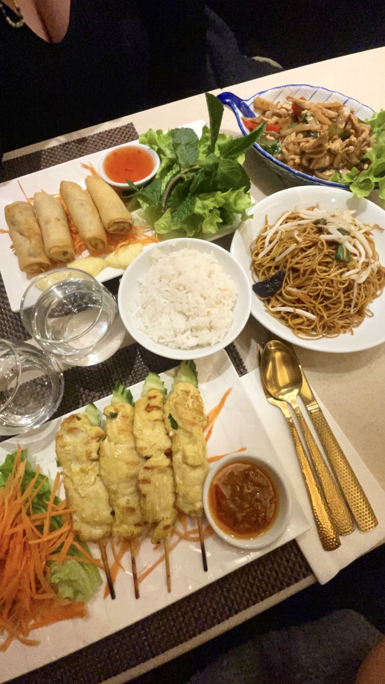 Pad thai, poulet au curry, riz sauté au poulet et nems à la banane et chocolat.... tout très très bon!!