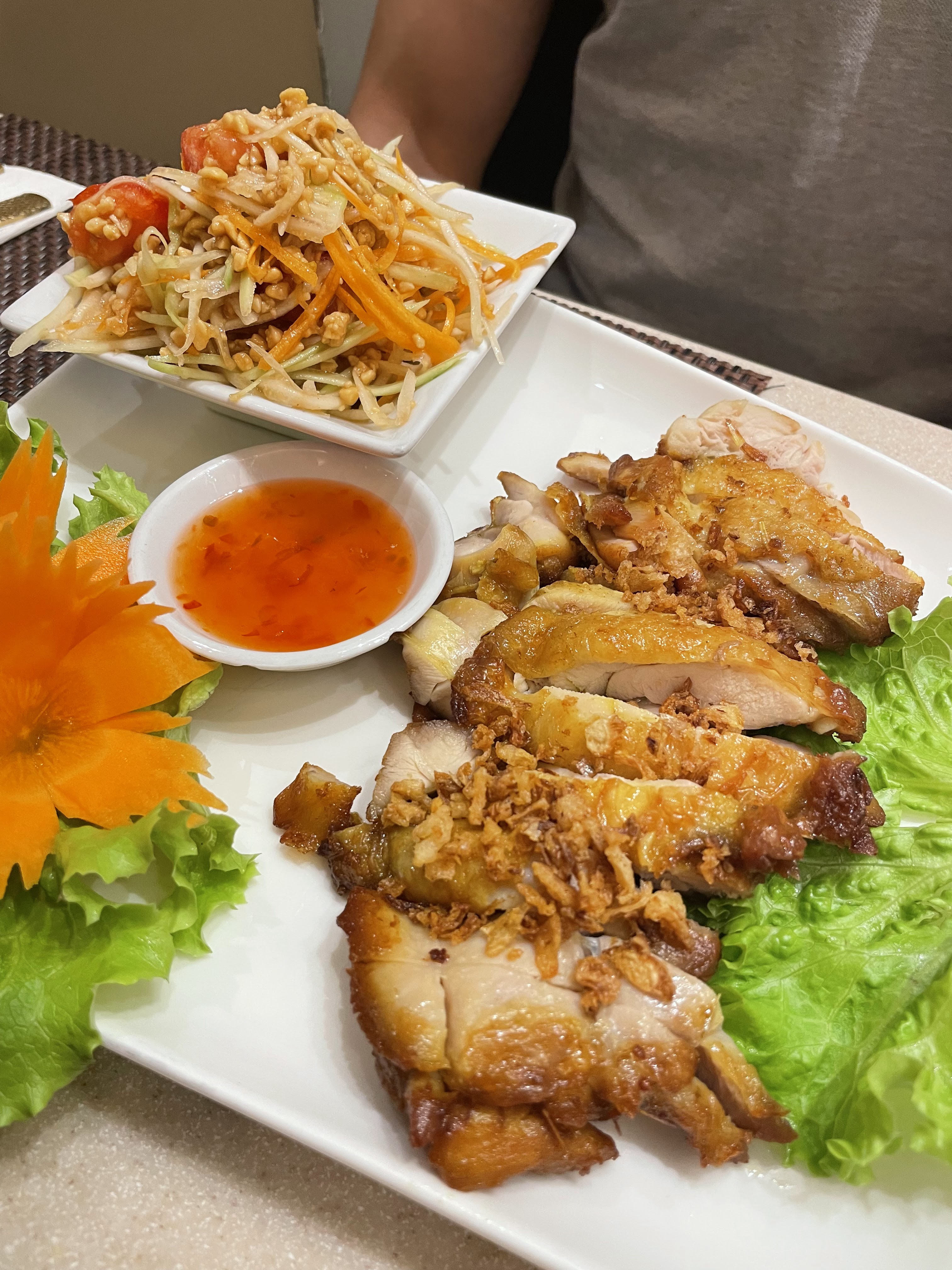 J’ai vraiment été déçu par ce restaurant. Ce n’était pas horrible mais la nourriture thaï est normalement tellement bonne que c’est incompréhensible de finir avec des plats aussi fades. De plus au delà des goûts qui n’étaient clairement pas au niveau, gros problème sur les cuissons. La salade de bœuf thaï est normalement très saignante, la elle était surcuite. Même problème pour le tigre qui pleure (car on lui a servi une semelle). Niveau musique on était sur une playlist chérie fm des années 90, un peu surprenante. Bref pas au niveau.
