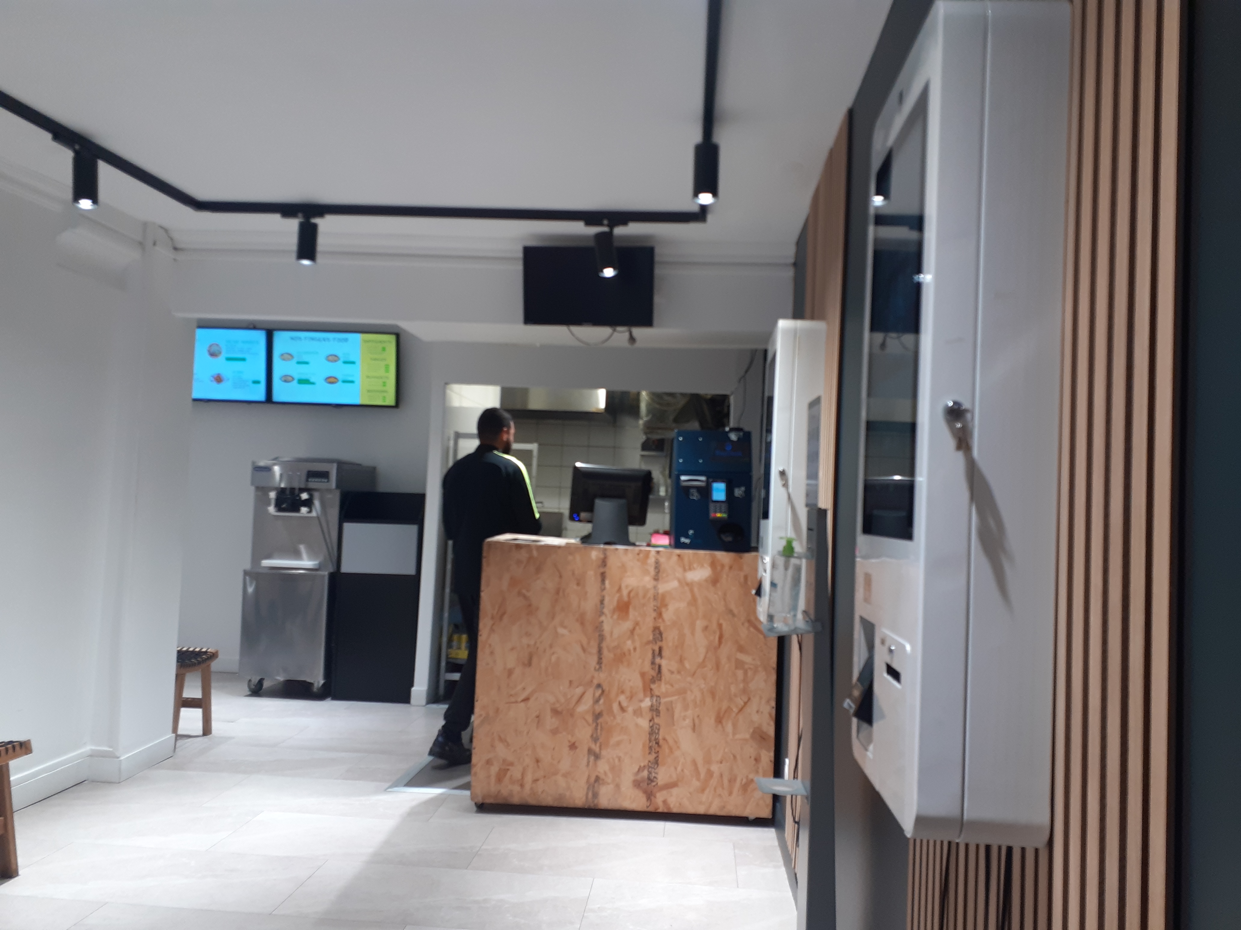 Malgré un cadre non décoré voir triste le lieu es pratique on commande via une borne comme chez mcd on attend et c près avec son numéro comme a la CQ mais par contre beaucoup de livraison et en plus c très très bon du coup pensé à la déco c serrait un plus pour la note de 5 étoiles