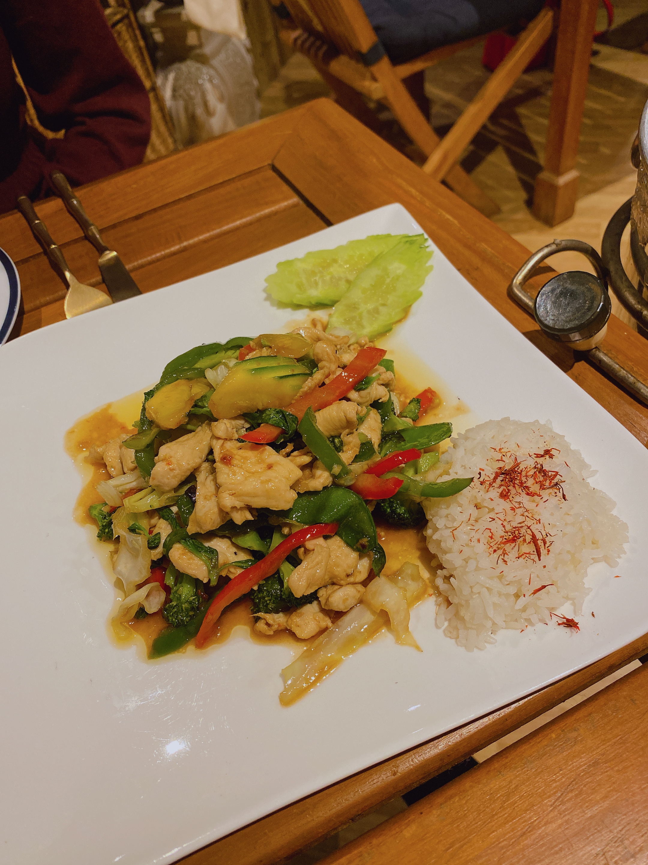 Cuisine délicieuse, goûteuse, Savoureuse. Digeste, et l'on choisit le dosage du piment. Choix de jus de fruit , vins, très corrects.