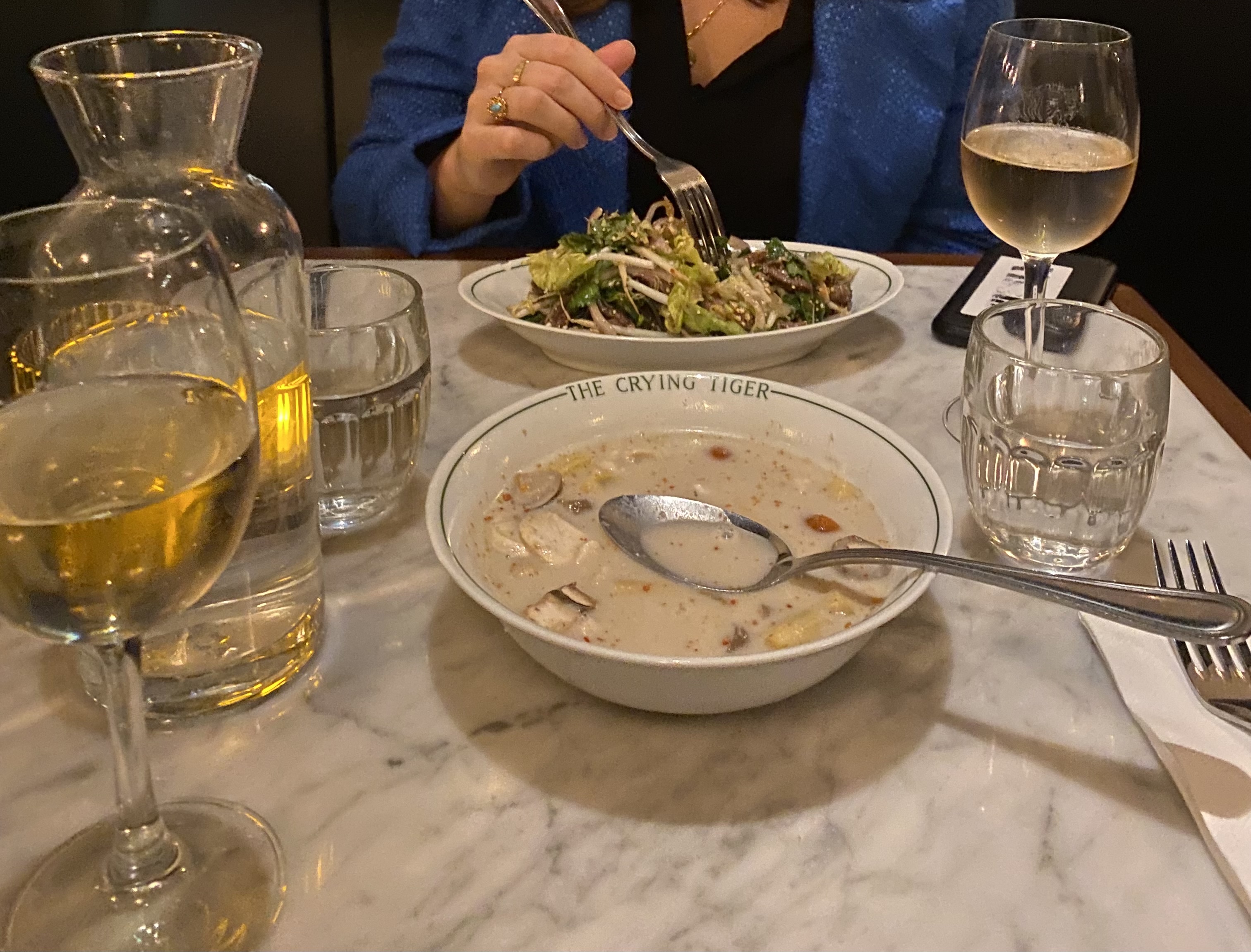 La cuisine est très bonne, parfumée, raffinée, et nous offre de faire un voyage dans l'assiette. En revanche, le service manque un peu de gentillesse et la salle est trop bruyante. Cependant c'est une bonne table pour les amateurs de Thaïlande revisitée ! Personnellement, j'ai du plaisir à déguster le Crying Tiger ou les délicieux pad thai qui me réconcilient avec la vie, les jours de blues...