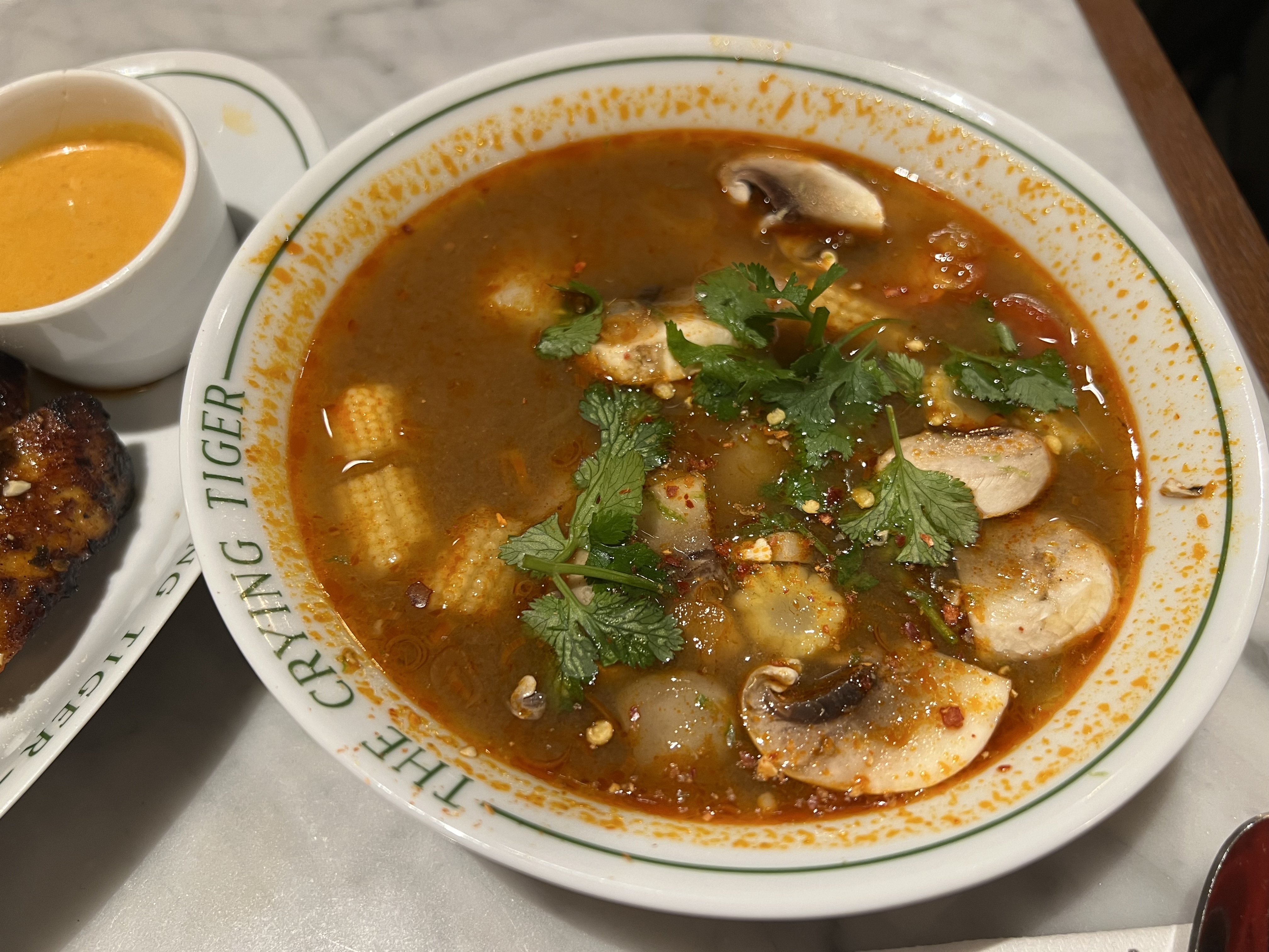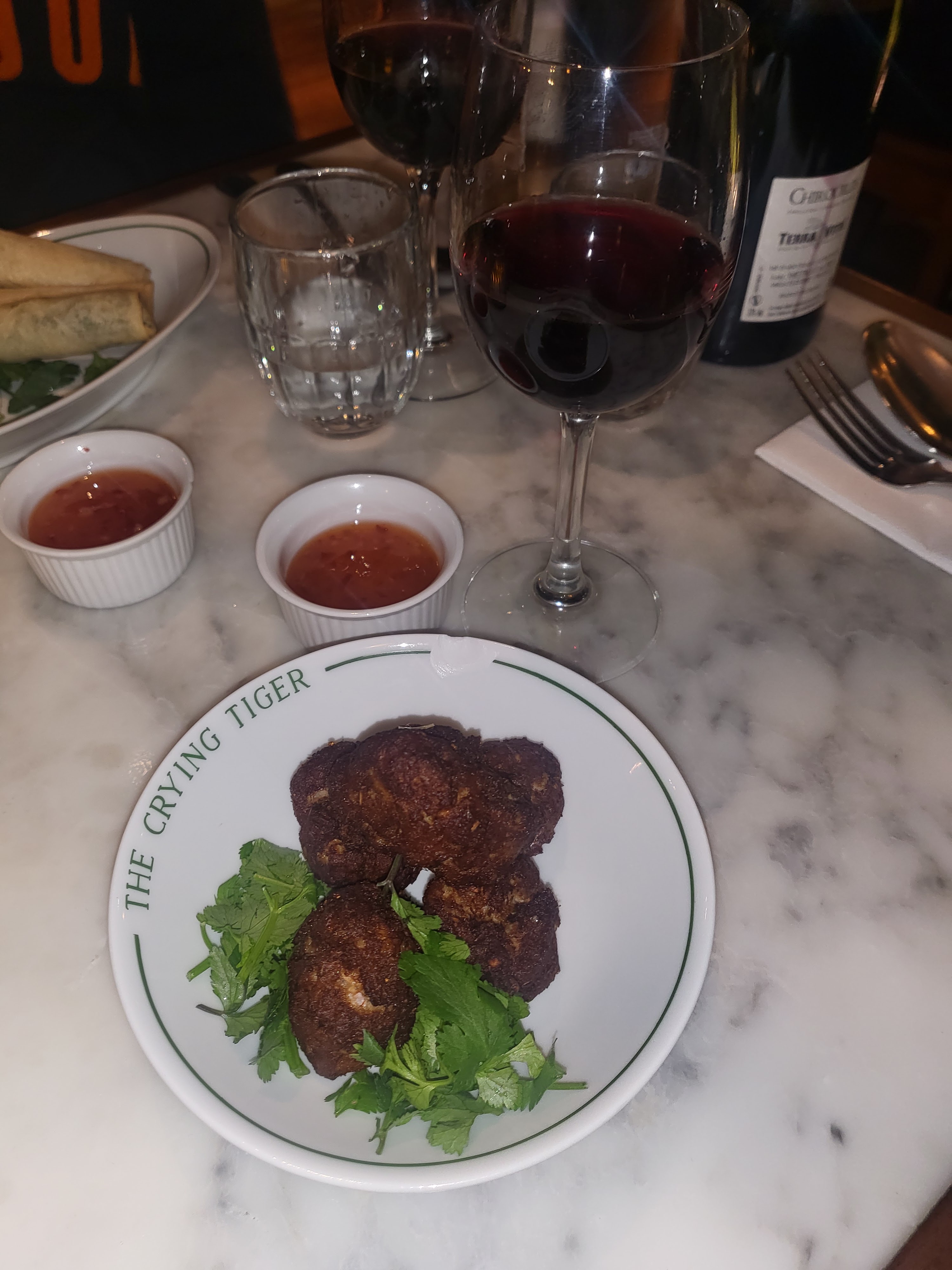 Ça fait toujours plaisir de manger de la cuisine thaïlandaise. Thé Crying Tiger est très agréable, le cadre est sympathique mais un peu petit à mon goût. On est un peu serré. En hiver, la table près de la porte est sujette aux courants d’air. Le service est impeccable. Pour le reste, il ne faudra pas oublier de demander si les plats sont épicés ou pas car vous aurez des surprises. Les nems au poulet sont correctes mais j’ai plus apprécié les pad thaï poulet.