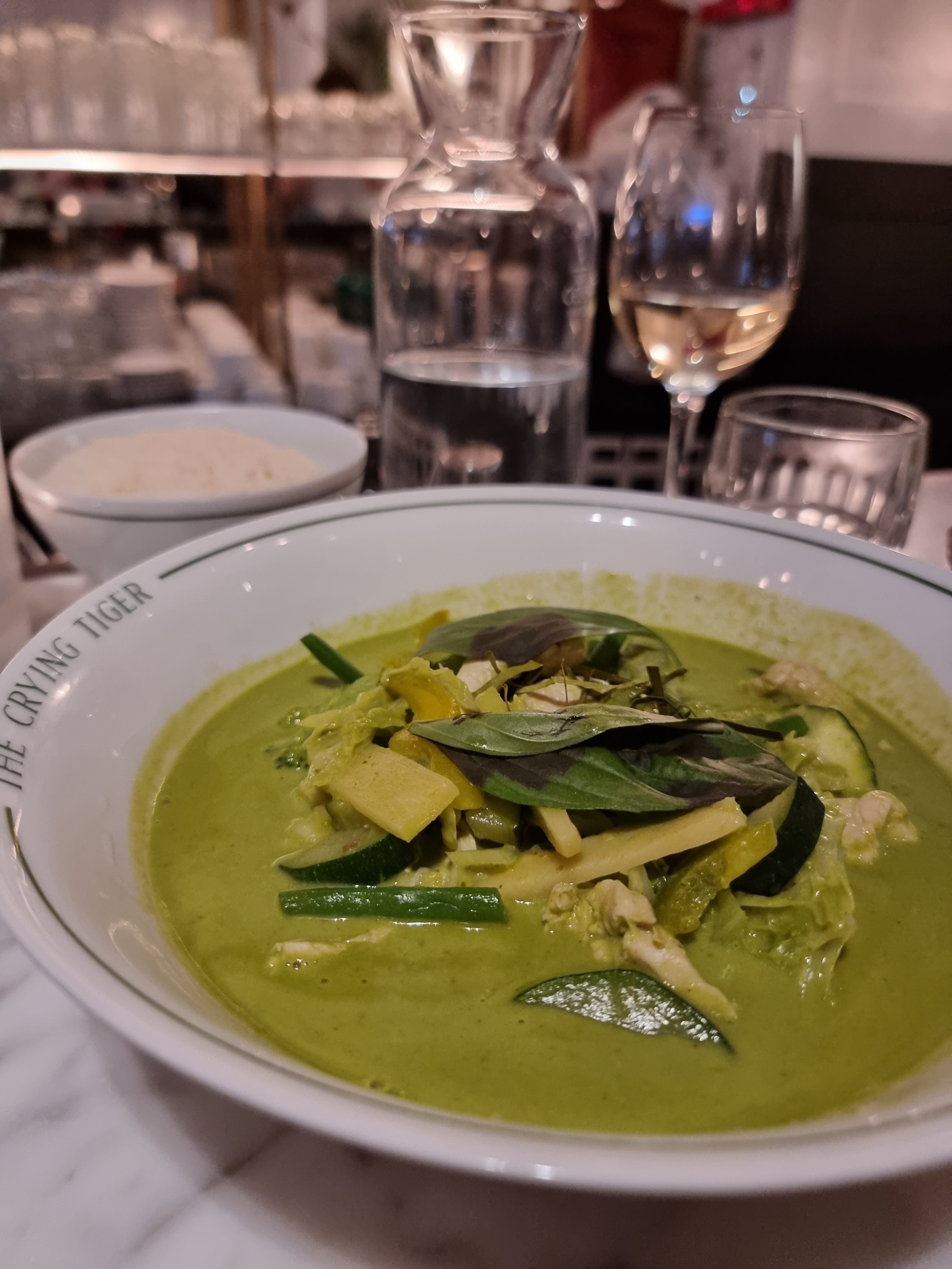 Encore une super soirée chez Crying Tiger, victime de son succès à juste titre il faut bien penser à passer un coup de fil rapidement pour réserver. L’équipe est super ! Ils sont dynamiques à l’écoute efficaces c’est un réel plaisir de venir ici. Je vous recommande les curry verts que vous soyez végétarien ou carnivores ils sont très très bons légèrement relevés et en quantité très copieuse !! Vous repartirez repus et comblés ! Seul petit bémol serait le prix assez élevé mais la qualité du restaurant sur tous les plans le justifie, et les desserts qui manquent un peu de diversité, mais je vous conseille le riz gluant à la mangue !! Merci encore et bravo à vous !