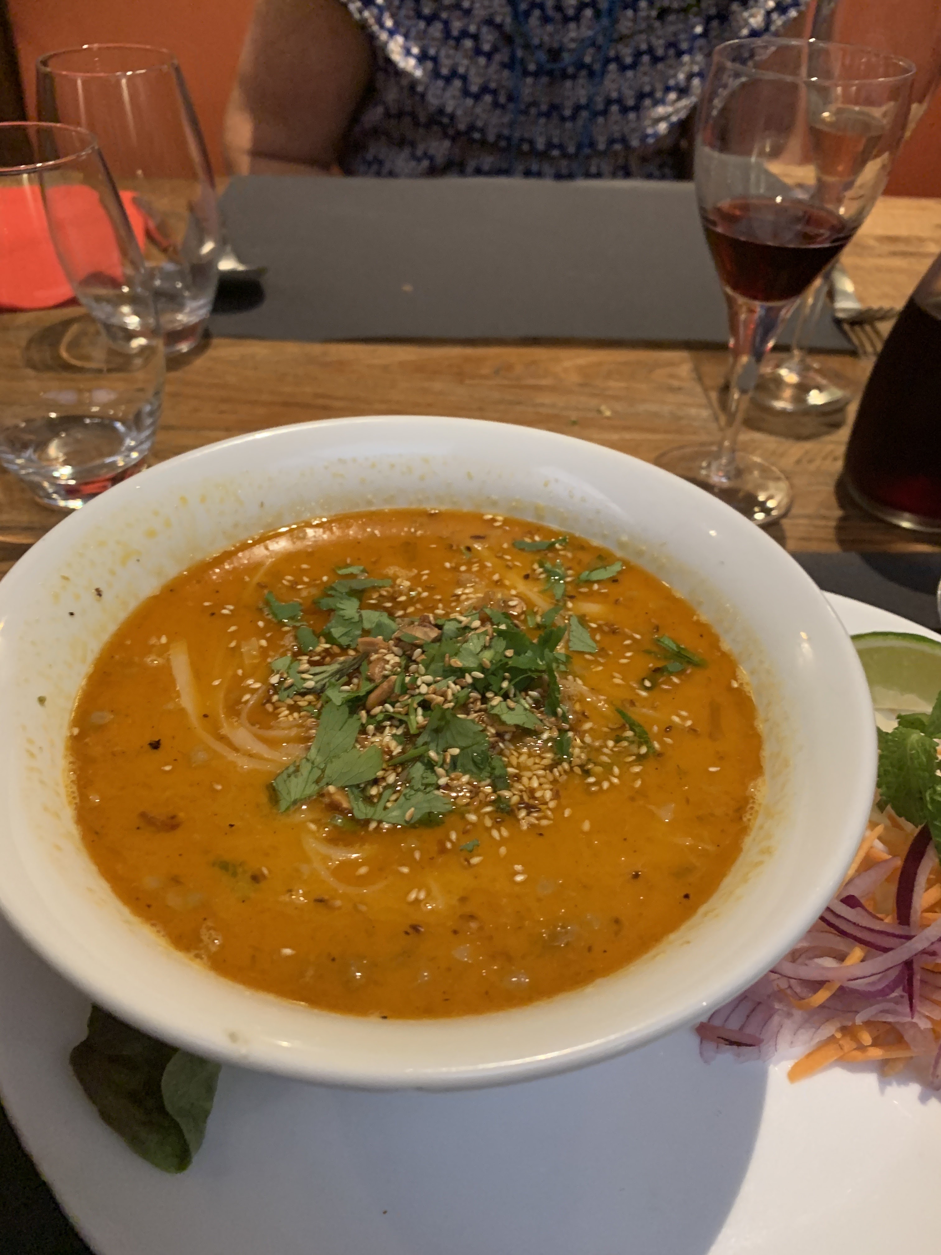 Très belle découverte! Les plats sont bien assaisonnés et parfumés et sont élaborés avec des produits de qualité. En top : la soupe légume, le pad thaï et le service!